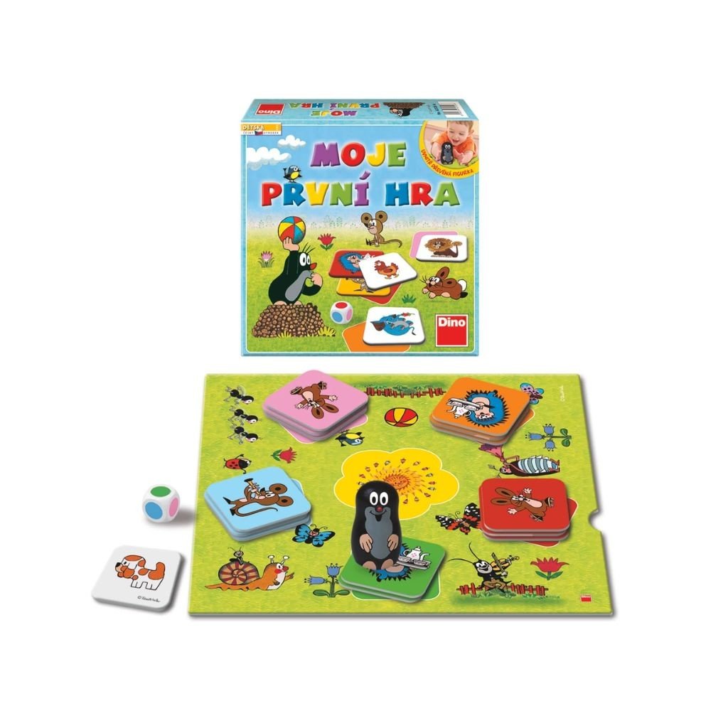 Moja prvá hra je jednoduchá a zábavná rodinná stolová hra s motívom Krtka, v ktorej pomáhate Krtko nájsť jeho kamarátov na lúke. Hra obsahuje herný plán, 15 pevných kartičiek s úlohami, drevenú figúrku Krtka, farebnú kocku a návod, takže si deti užijú interaktívnu zábavu. Je určená pre 2-3 hráčov, trvá cca 15 minút a učia deti rozpoznávať farby, zvuky zvierat a jednoduché pohybové úlohy pri spoločnom hraní s rodičmi či staršími súrodencami.Dodatočné parametre