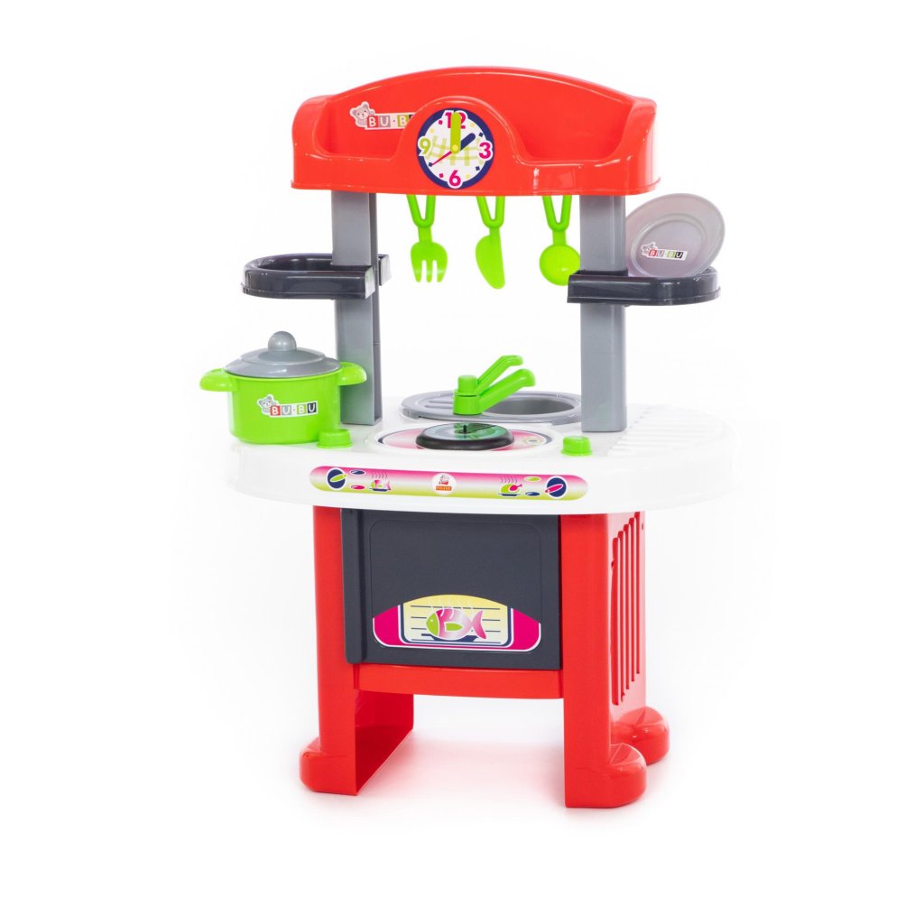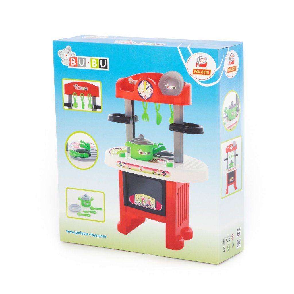 Kuchynka Bu-bu Palau so zvukom, 60 cm vysoká s pracovnou doskou vo výške 30 cm. Dvierka na rúre je možné otvárať, súčasťou sú aj vyobrazené doplnky. Po položení hrnca na varnú plochu znie zvuk varenia. Kuchynka je vyrobená v licencii značky Palau. Batérie 2 x AA 1,5V sú súčasťou balenia.Dodatočné parametre