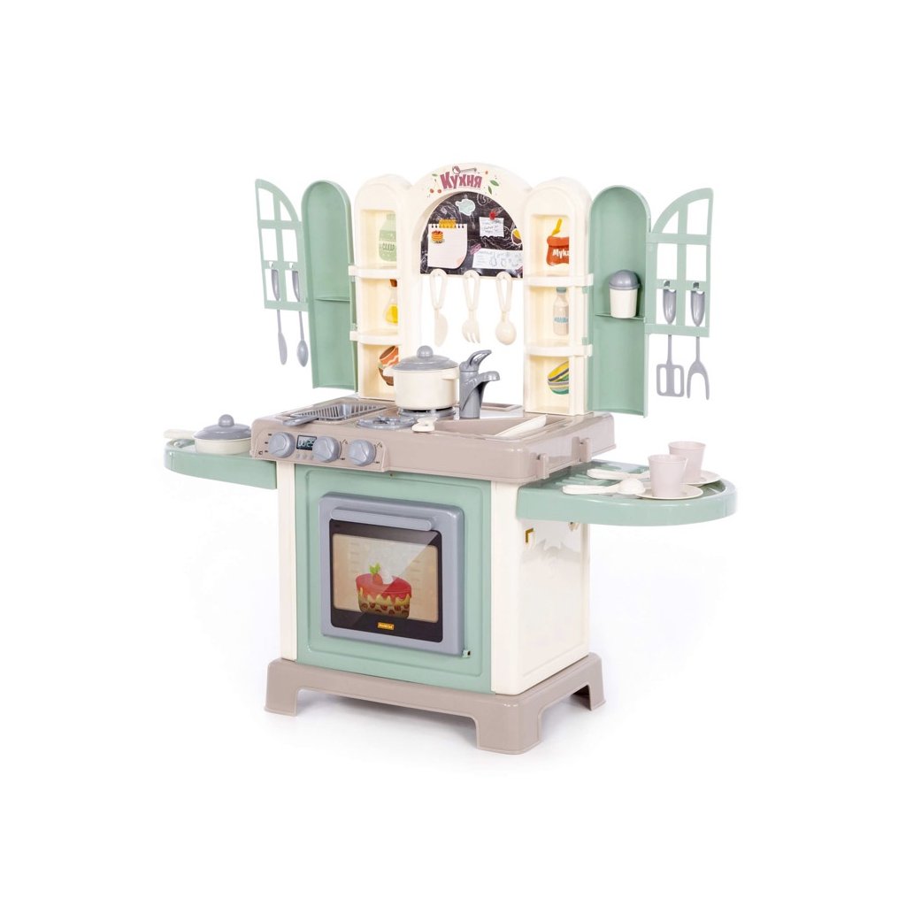 Set NATALI je hrací komplex, ktorý imituje skutočnú kuchyňu s veľkou doskou. Dizajn predpokladá prítomnosť dverí s oknami, ktoré dopĺňajú dizajn a robia hru realistickejšou. Súprava je vybavená niekoľkými zónami varná zóna vrátane fritézy a priestor na umývanie riadu. Na hornom paneli komplexu je sporák s horákmi a pod ním je pec. Kuchynský dizajn obsahuje police, na ktorých je vhodné skladovať riad na hračky. Je tu priestor na zapisovanie receptov, ako aj kniha receptov hračiek, presne ako skutočný kuchár. Sada na hranie rolí rozvíja schopnosť hrať sa individuálne aj so skupinou, rozvíja tvorivé a komunikačné schopnosti, ako aj jemnú motoriku. brbr Obsahuje br panvica - 1 ks. br panvica - 1 ks. brsoľnička - 1 ks. brpodšálky - 2 ks. brnože - 2 ks. brvidlice - 2 ks. brlyžice - 2 ks. brtanier - 1 ks. brkuchynský riad - 4 ks. brsklo - 2 ks.Dodatočné parametre