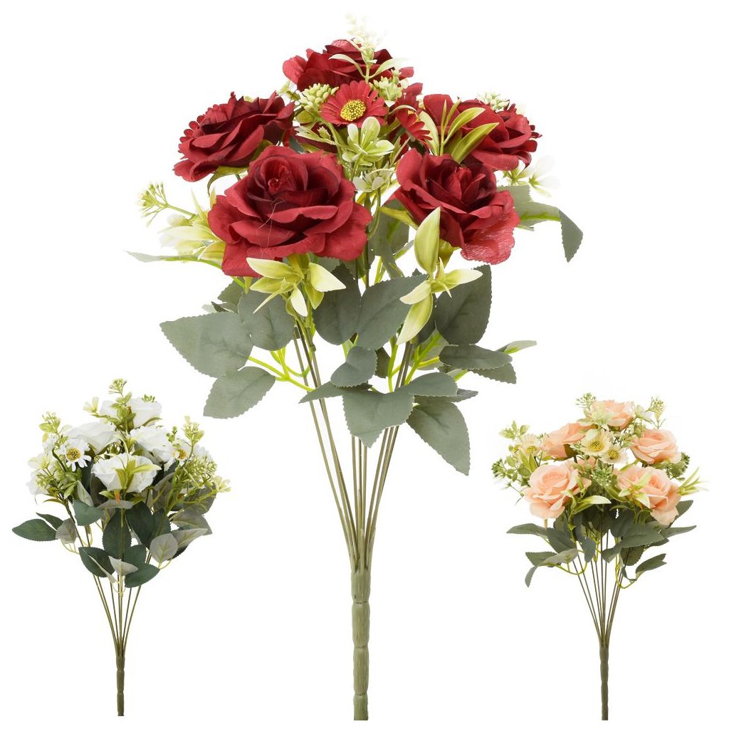 KYTICA RUŽA, DROB.KVETY, ZELEŇ MIX/3F 41CM