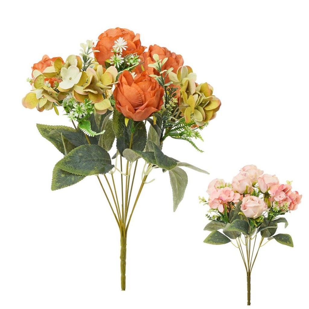 KYTICA RUŽA, HYDRANGEA, DROB.KVETY, ZELEŇ MIX/3F 40CM