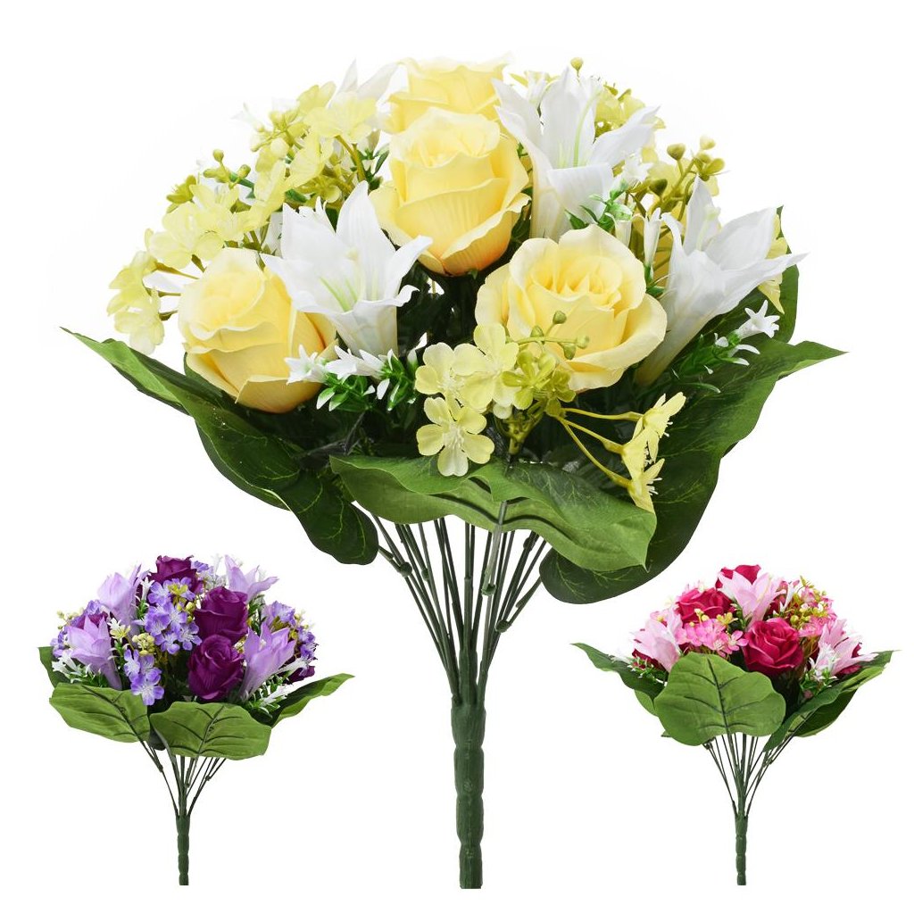 KYTICA RUŽA, ĽALIA, DROB,KVETY x19 MIX/3F 40CM