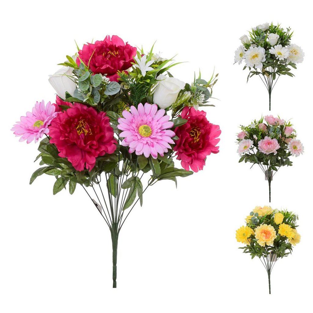 KYTICA RUŽA,GERBERA,PIVONKA, ZELEŇ 4F 57cm