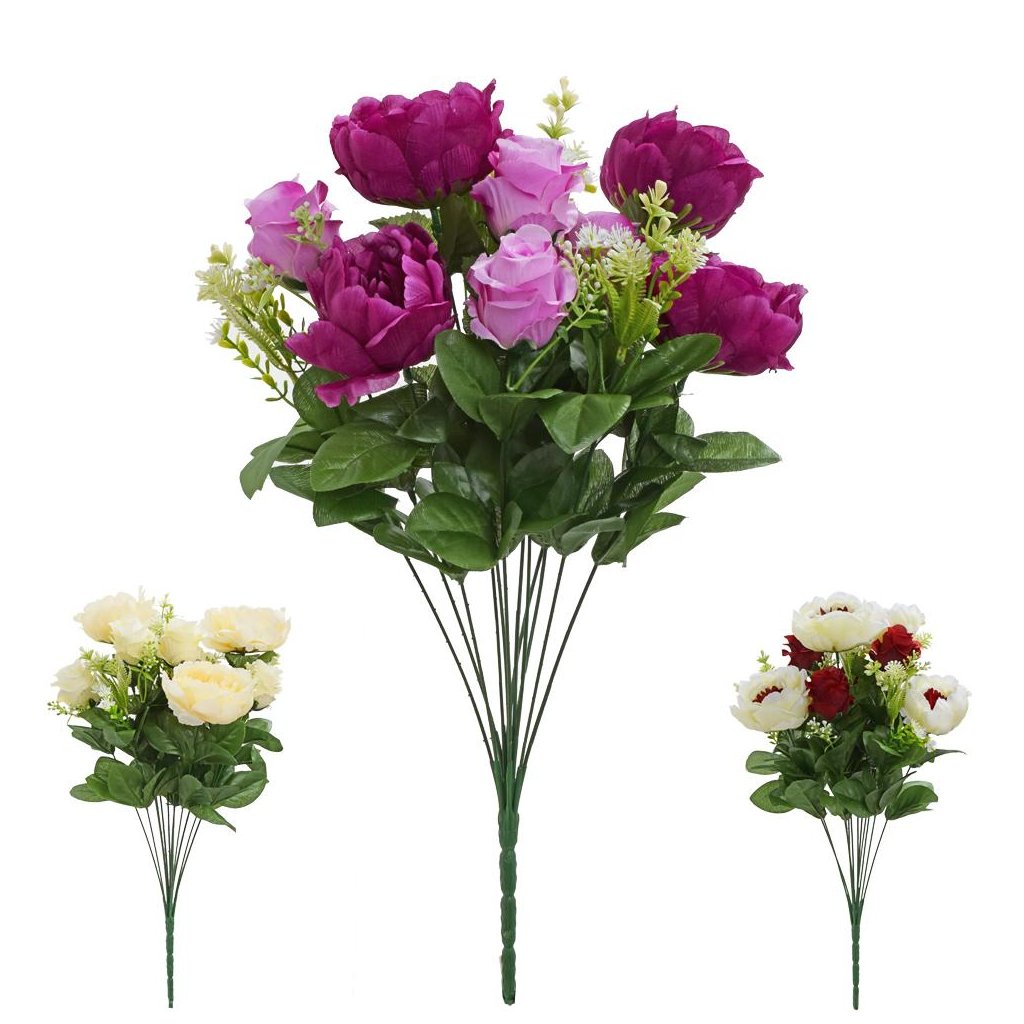 KYTICA RUŽA PIVONIA x12 MIX 3F 48cm CERISE,RED,CREAM