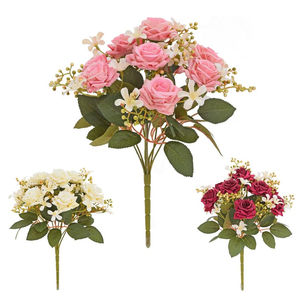 KYTICA RUŽA ZAMAT., DROB. KVETY, ZELEŇ MIX/3F 34CM