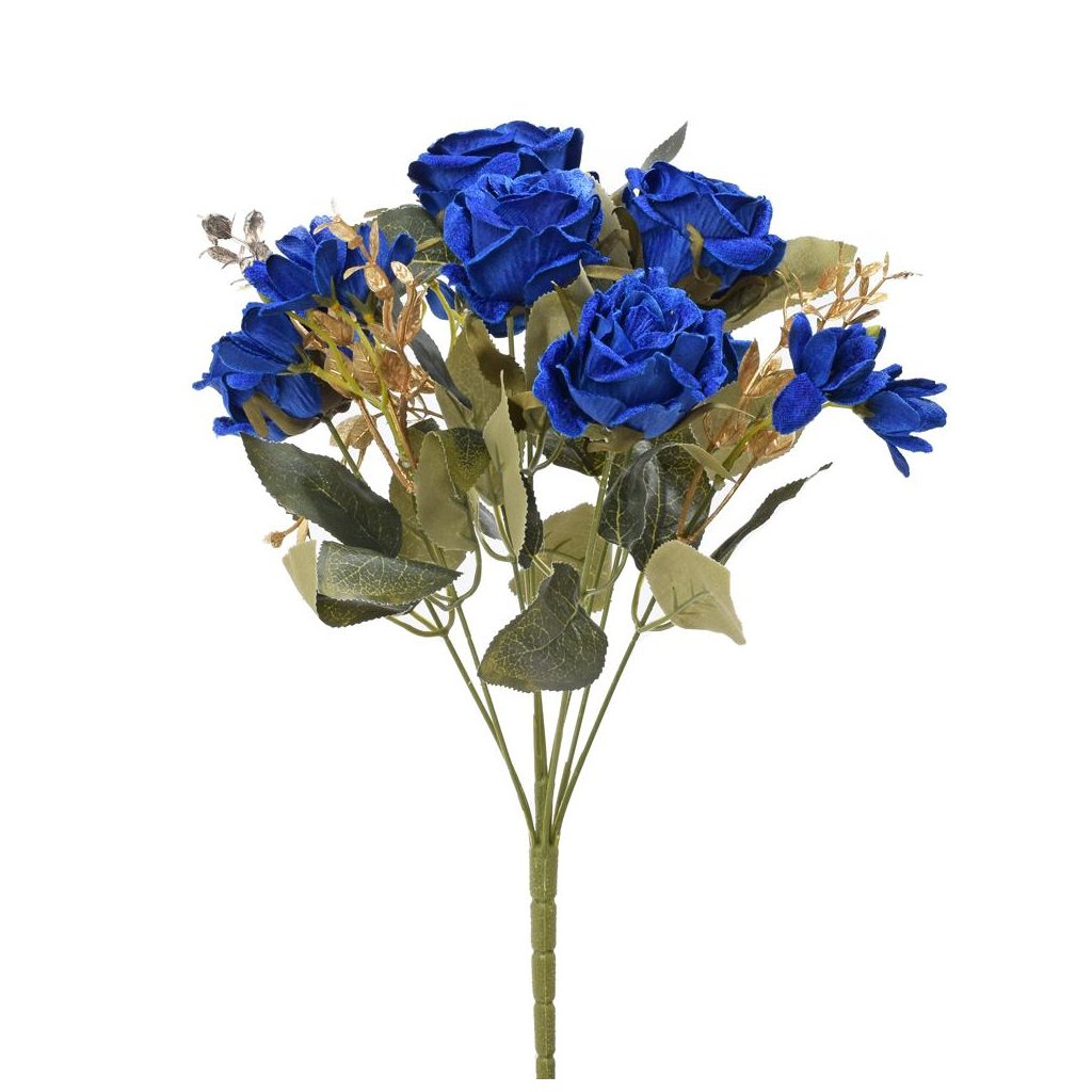KYTICA RUŽA ZAMAT MODRÁ, DROB.KVETY, ZLAT.PAPRAĎ 40CM