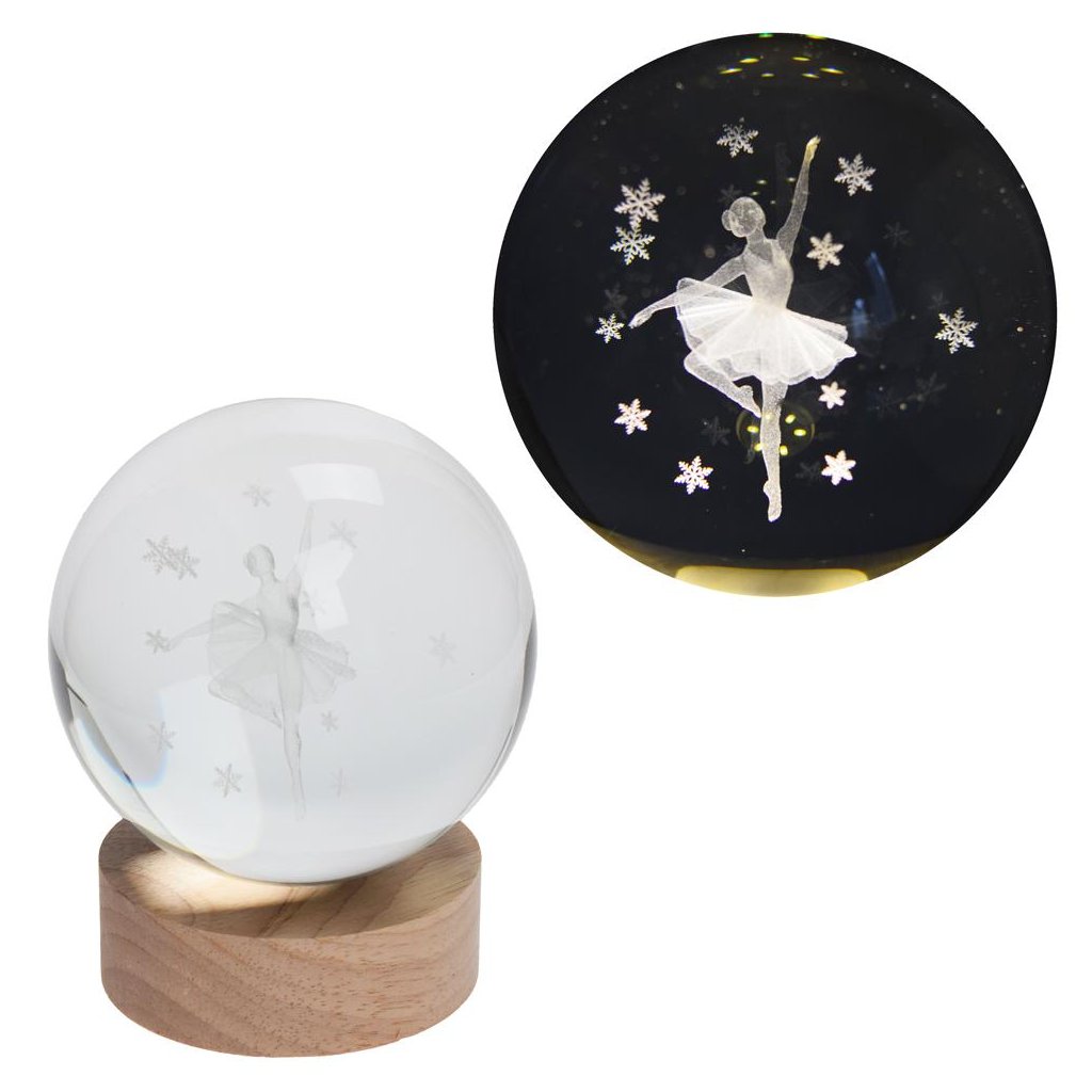 LED GUĽA SKLO NA DREV.PODSTAVCI S PODSVIETENÍM BALETKA10*12CM