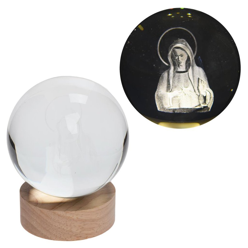 LED GUĽA SKLO NA DREV.PODSTAVCI S PODSVIETENÍM PANNA MÁRIA 10*12CM