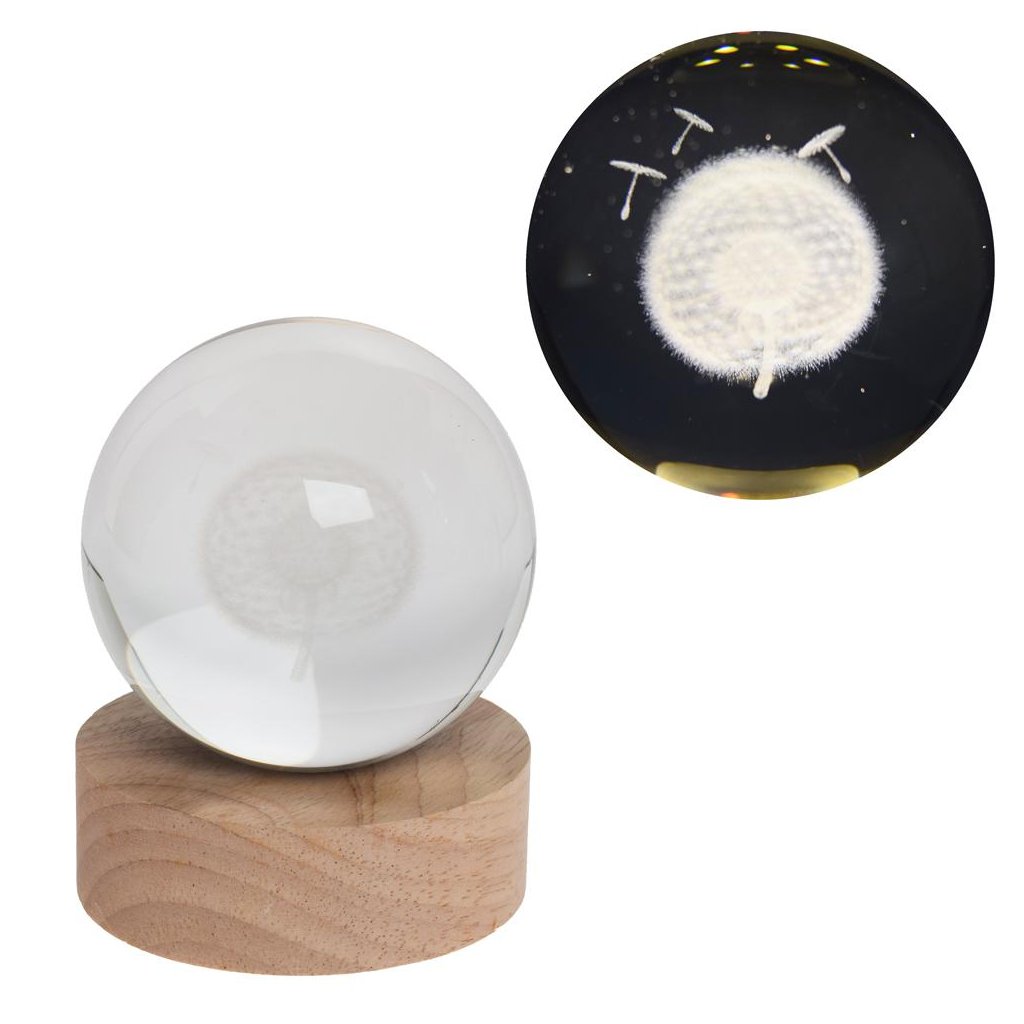 LED GUĽA SKLO NA DREV.PODSTAVCI S PODSVIETENÍM PÚPAVA 8*10CM