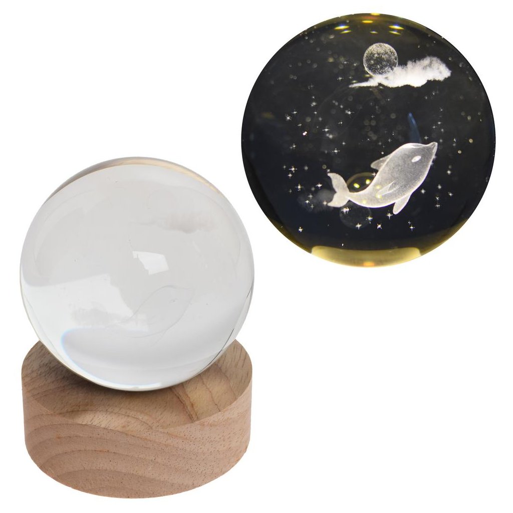 LED GUĽA SKLO NA DREV.PODSTAVCI S PODSVIETENÍM RYBA 8*10CM