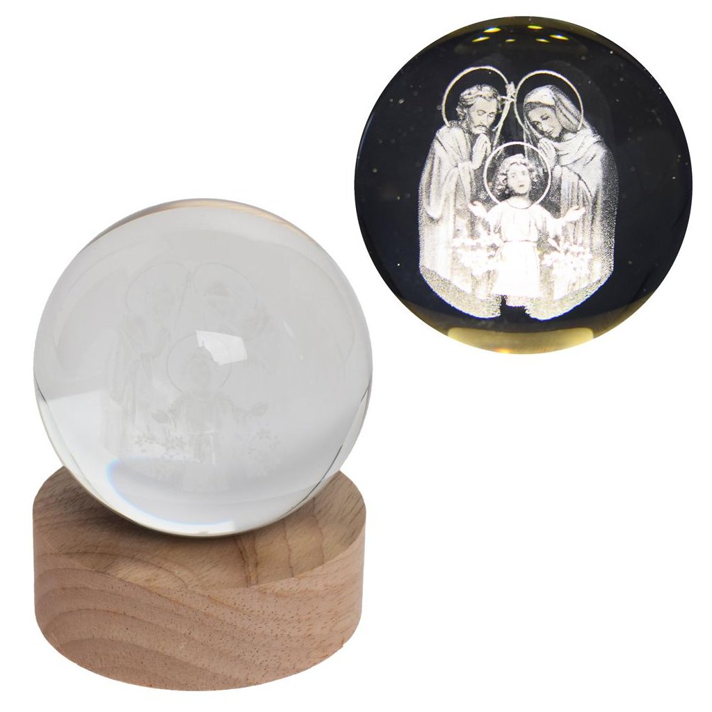 LED GUĽA SKLO NA DREV.PODSTAVCI S PODSVIETENÍM SV.RODINA 8*10CM