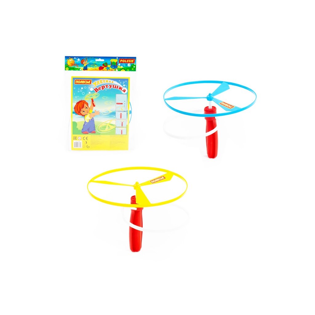Poď sa hrať von! Mechanizmus sa skladá z plastového remienka so zúbkovaným povrchom, ktorý je zasunutý do otvoru umiestneného v rukoväti. Prudkým potiahnutím pásky vypustí vrtuľku. Hra s ?lietajúcou vrtuľkou? spestrí chôdzu a zabaví deti vonku aj vnútri.Dodatočné parametre
