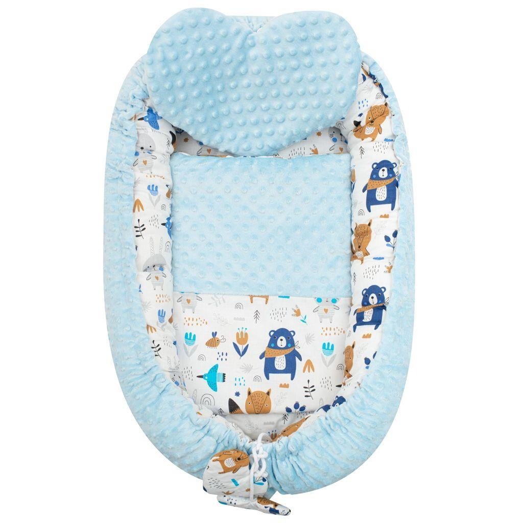 Luxusné hniezdočko s vankúšikom a perinkou New Baby z Minky modré