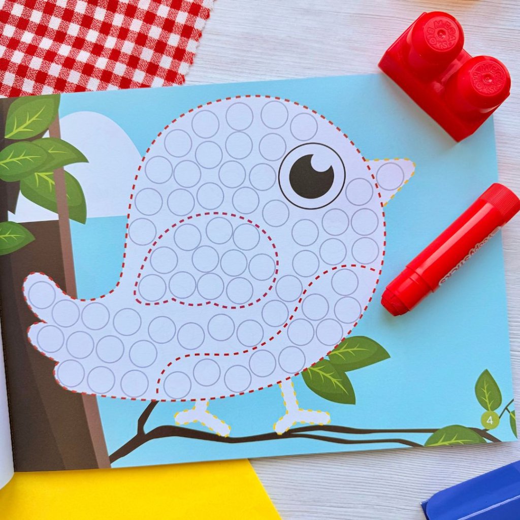 Maľuj bodkami Farma, Na každom liste sa nachádza jeden obrázok tvorený prerušovanými čiarami, ktorý je sčasti alebo úplne vyplnený obrysovými krúžkami – bodkami. Úlohou malých umelcov je dokresliť obrázok spojením prerušovaných čiar a následne ho vymaľovať ,,bodkovaním”. Cena je za kus. Vhodné pre deti vo veku 3+ rokov.Dodatočné parametre