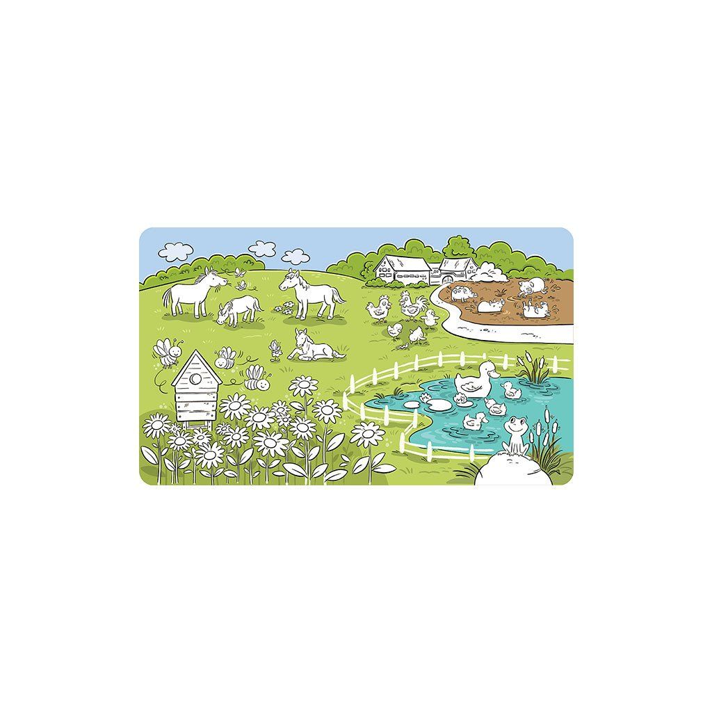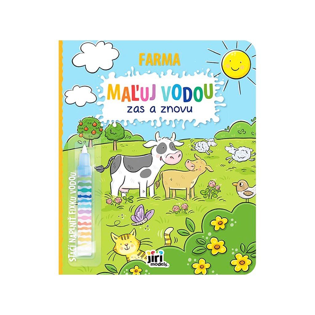 Maľuj vodou zas a znovu Farma, obsahuje 10 krásne farebných strán s obrázkami. Po aplikácii vody sa farba objaví a po zaschnutí opäť zmizne, obrázky je možné vďaka tomu maľovať opakovane. Pero na vodu je súčasťou balenia. Má rozmery 265 X 223 mm. Cena je za kus. Vhodné pre deti vo veku 3+ rokov.Dodatočné parametre
