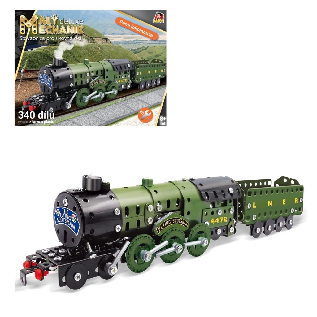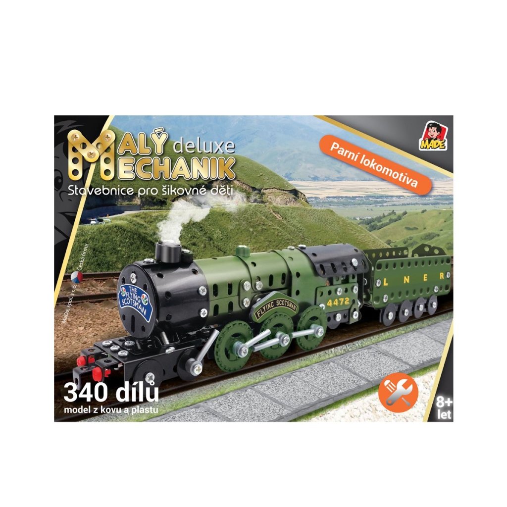 Malý mechanik - parná lokomotíva s uhl. Detská stavebnica Malý mechanik obsahuje kovové diely a plastové doplnky, spája sa pomocou skrutky a matičiek. 340 dielikov. Český box v grafickom dizajne radu Malý mechanik. Rozmer: 40,5 x 4,5 x 8 cm. Doporučený vek: 6 +Dodatočné parametre