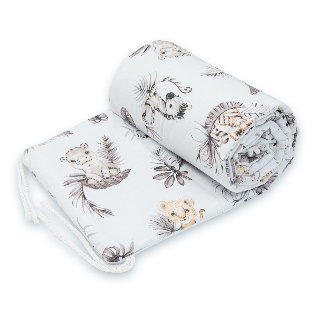 Moderný a praktický mantinel do postieľky New Baby. Je vyrobený z mäkkého, príjemného materiálu. Zloženie: 100% bavlna. Výplň: 100% polyester. Upevnenie k postieľke za pomocou stúh. Rozmer: cca 180x32 cm.