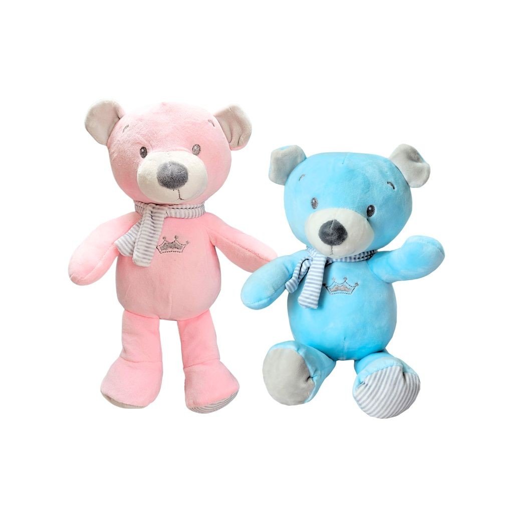 Milý plyšový medveď Joe so šálou je perfektný na objímanie a je jemný na dotyk. Možnosť výberu z dvoch farieb – modrý alebo ružový.