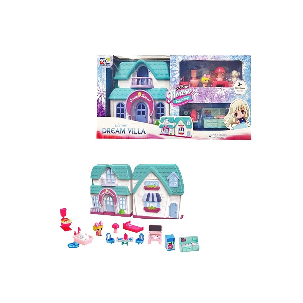 Skladací domček - Vila s príslušnestvom - pre bábiky je dodávaný so všetkým, čo vaše dieťa môže vidieť vo svojom vlastnom dome. Deti budú milovať usporiadanie domu presne tak, ako chcú, a obzvlášť si budú užívať vytváranie vlastných rodinných dobrodružstiev. Je skvelým darčekom na narodeniny, Vianoce.Nevhodné pre deti do 3 rokov.