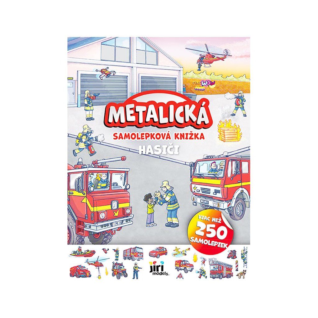 Metalická samolepková knižka Hasiči, obsahuje 24 strán, 4 strany papierových samolepiek a 4 strany samolepiek s farebným metalickým efektom. Má rozmery 280 X 210 mm. Cena je za kus. Vhodné pre deti vo veku 3+ rokov.Dodatočné parametre