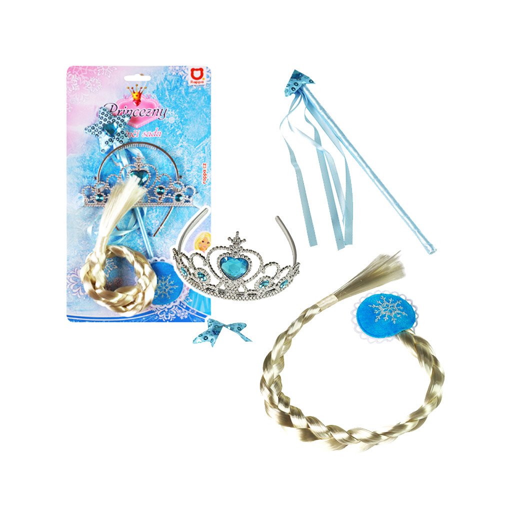 Modrá princezná s copom sada, sada má rozmery 32 x 20 cm. Sada obsahuje korunku, paličku a vrkoč. Cena je za sadu. Vhodné pre deti 3+.Dodatočné parametre