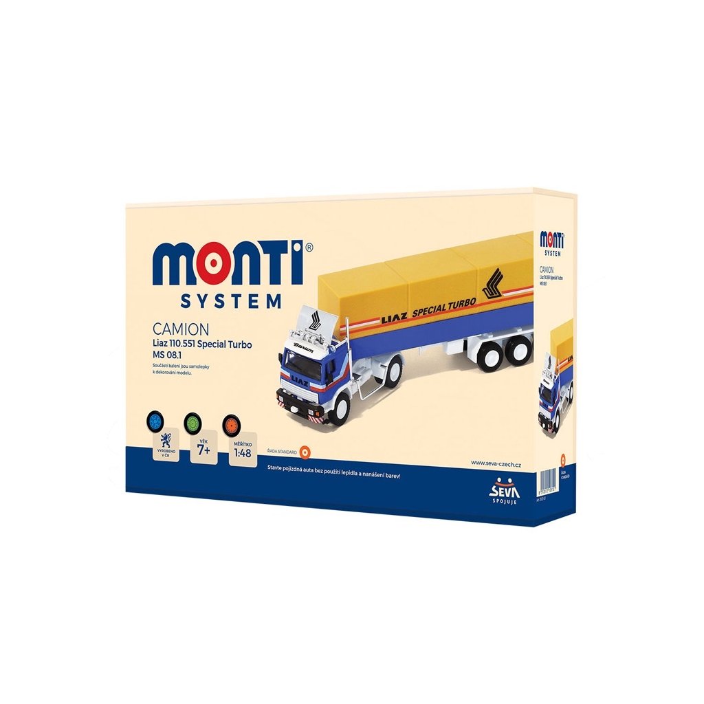 Monti System MS 08.1 - Kamion Modely z radu STANDARD sú viac detailnejšie a tým pádom obsahujú viac dielikov. Počet dielikov sa pohybuje približne okolo 50. Aj napriek tomu sú modely radu STANDARD stále jednoduché na zloženie a zvládnu ich zostaviť deti od 6 rokov. Autá sa vyrábajú v mierke 1:48.Dodatočné parametre