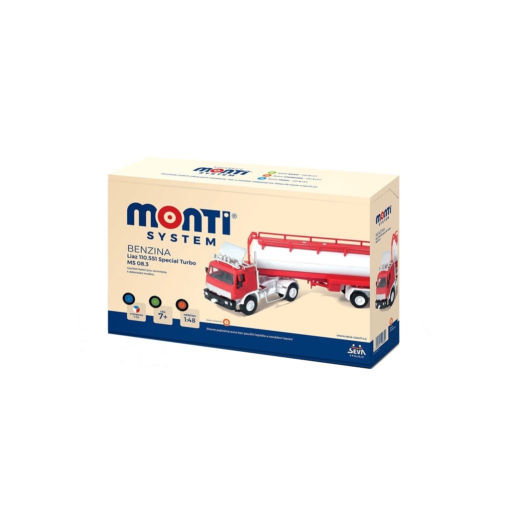 Monti System MS 08.3 - Benzina Modely z radu STANDARD sú viac detailnejšie a tým pádom obsahujú viac dielikov. Počet dielikov sa pohybuje približne okolo 50. Aj napriek tomu sú modely radu STANDARD stále jednoduché na zloženie a zvládnu ich zostaviť deti od 6 rokov. Autá sa vyrábajú v mierke 1:48.Dodatočné parametre