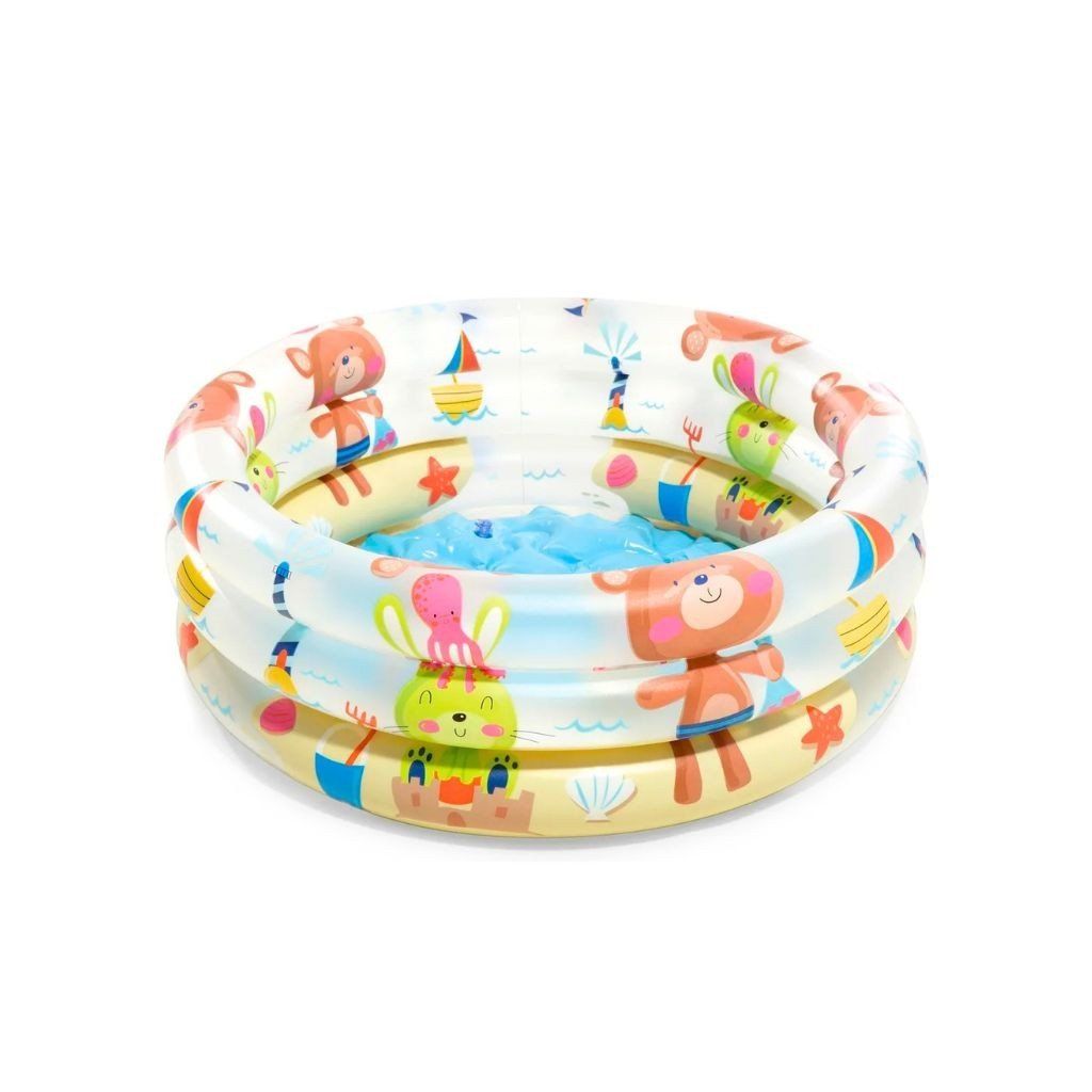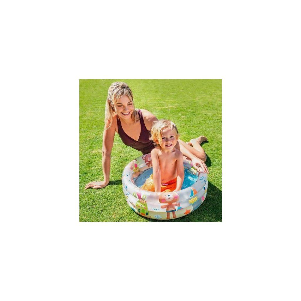 Nafukovací bazénik s motívom medvedíka je ideálny na letné osvieženie a zábavu pre najmenšie deti, veselý farebný dizajn zaujme každé dieťa a spríjemní horúce dni na záhrade, terase alebo dovolenke, kompaktné rozmery sú vhodné pre malé deti a jednoduché nafúknutie umožňuje rýchlu prípravu na používanie, vyrobený z kvalitného a odolného materiálu pre bezpečné vodné radovánky.Dodatočné parametre