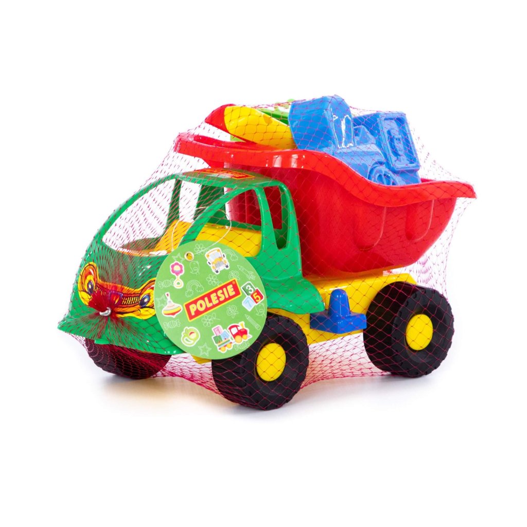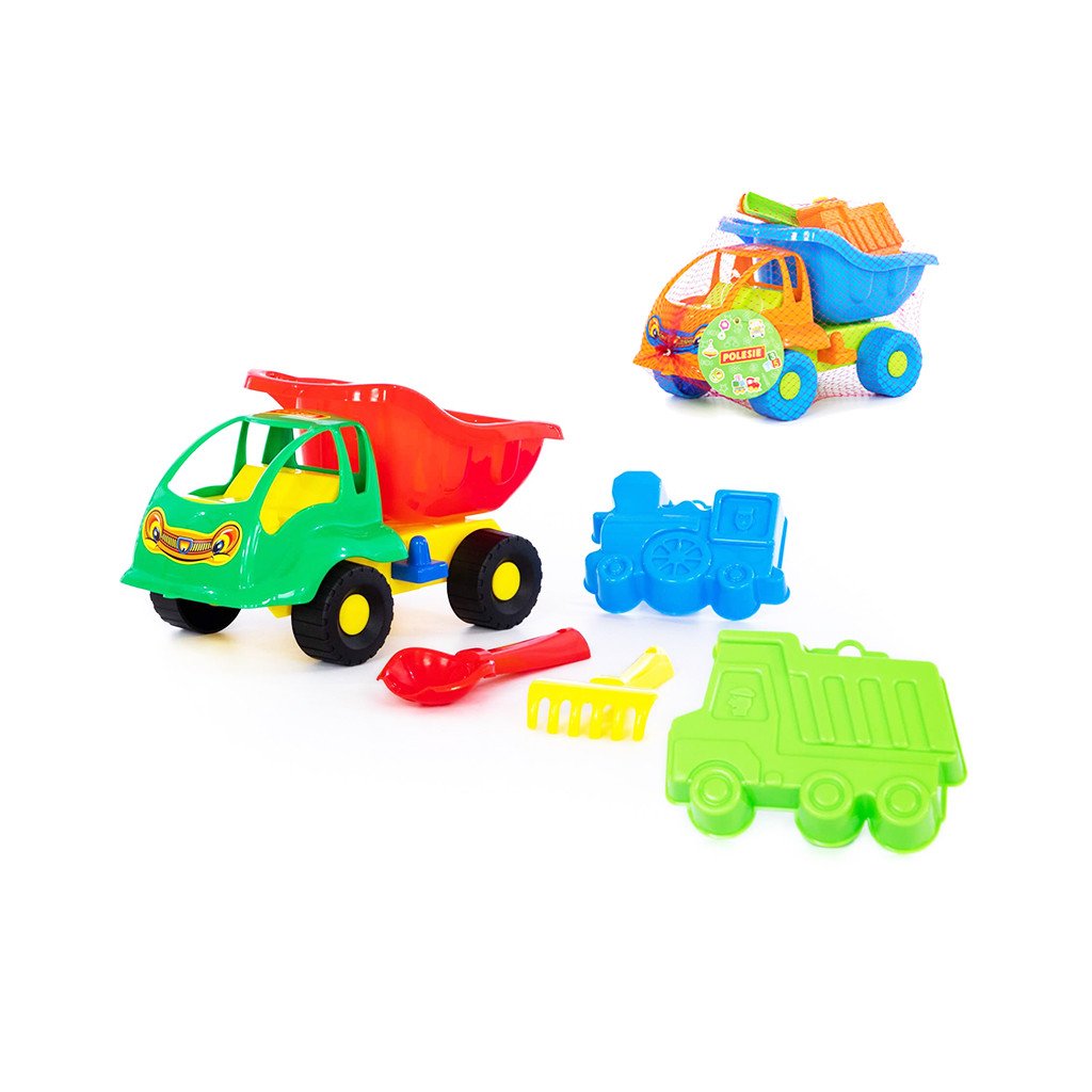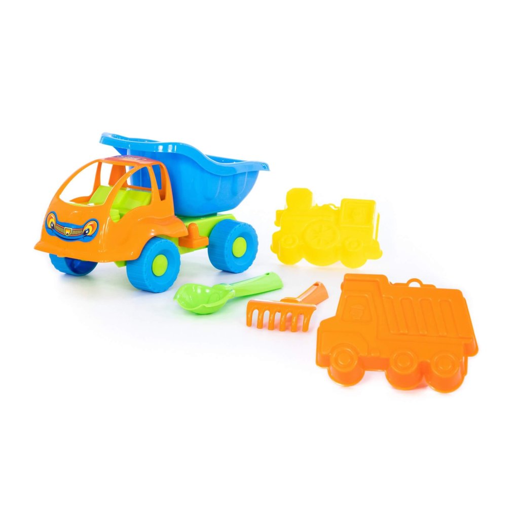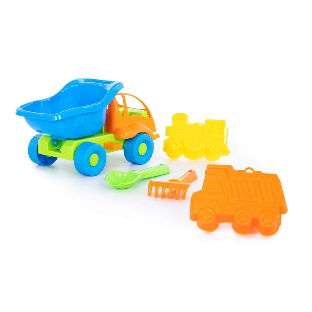 Nákladné autíčko na piesok s príslušenstvom, má rozmery 295х160х175 mm. Na výber je z dvoch farebných variánt. Sada obsahuje autíčko, 2 formičky, lopatku a hrable. Cena je za jednu sadu. Vhodné pre deti vo veku 3+ rokov.Dodatočné parametre