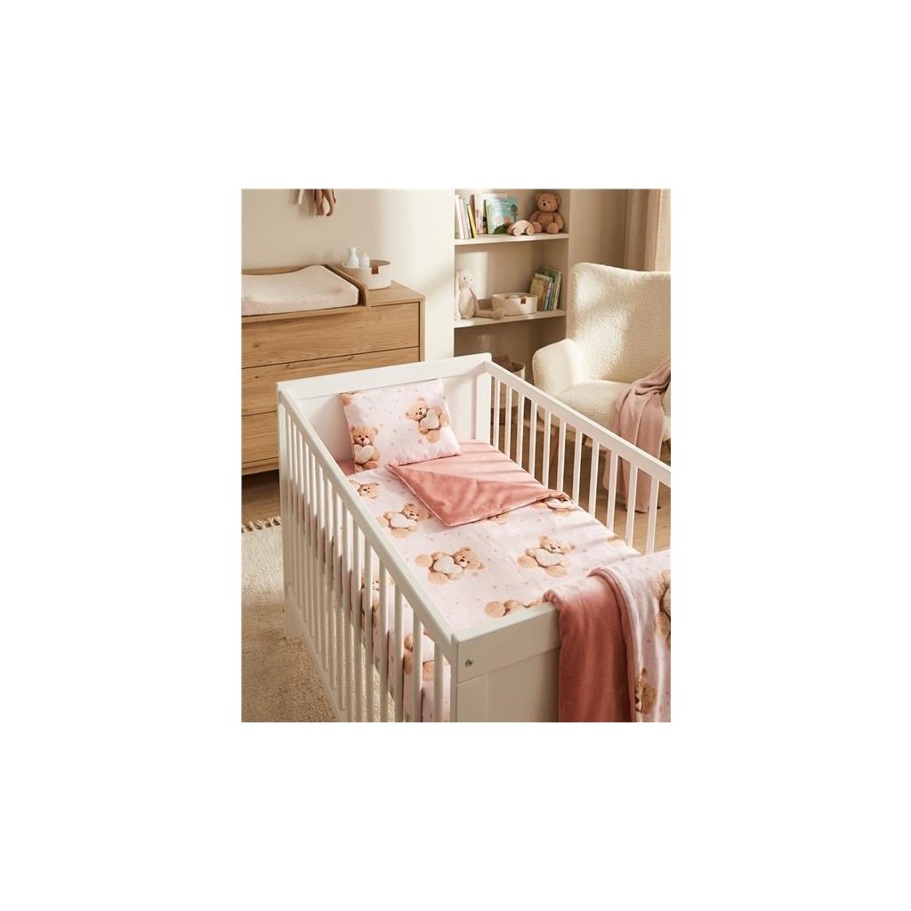 Obojstranný Set z Velvet a bavlny do kočíka New Baby Love Teddy Bear pink