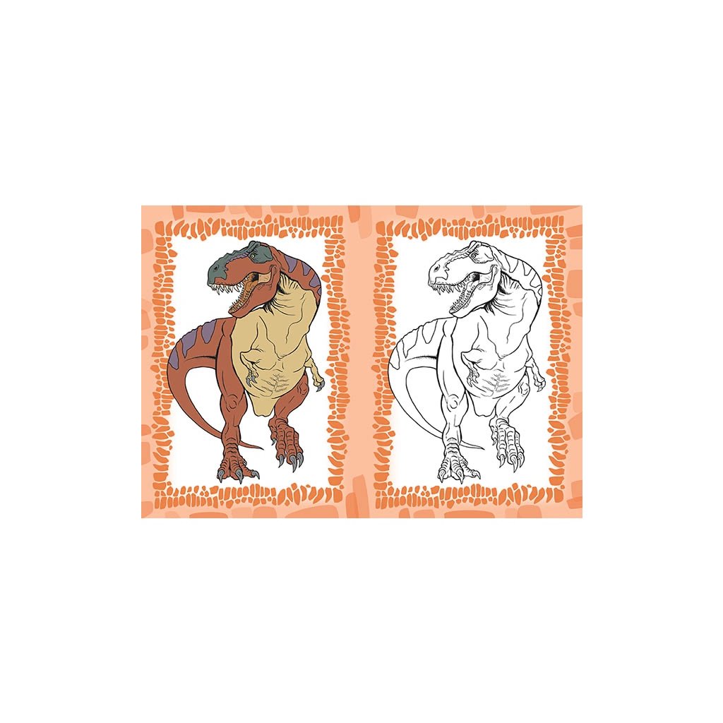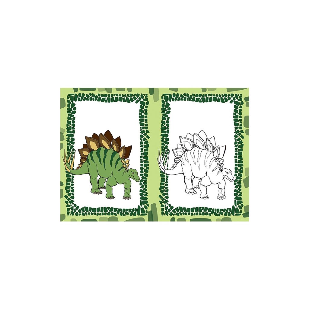 Omaľovánka A5 Dinosaury. Omaľovánka obsahuje 9 čiernobielych obrázkov na vyfarbenie a 9 farebných predlôh.Dodatočné parametre