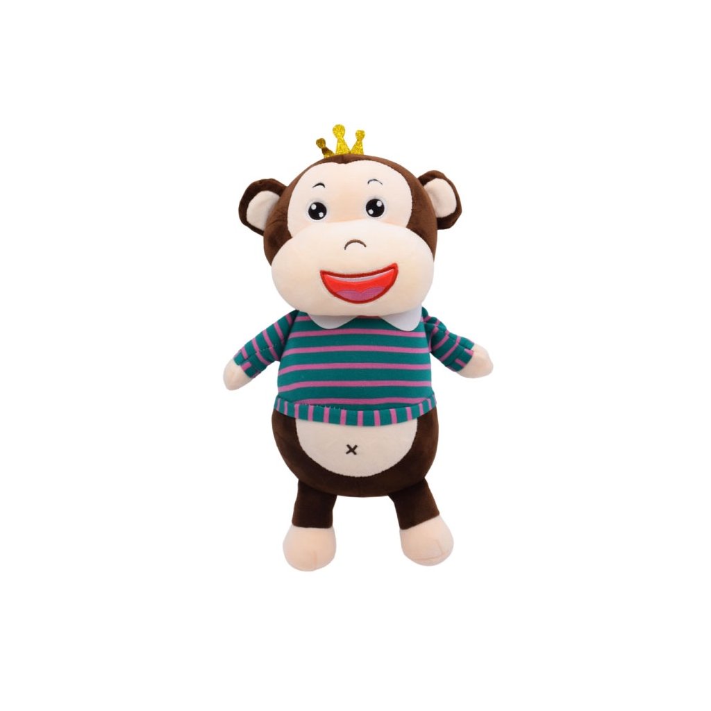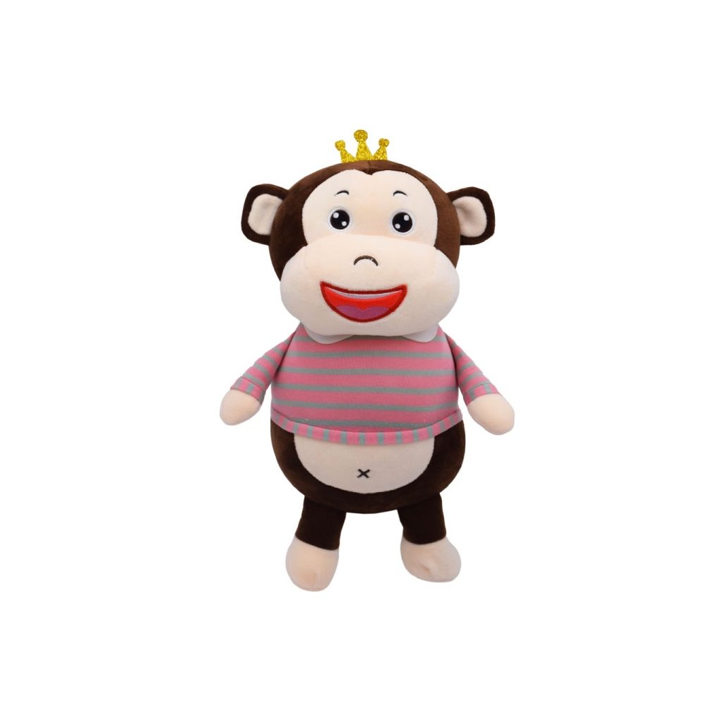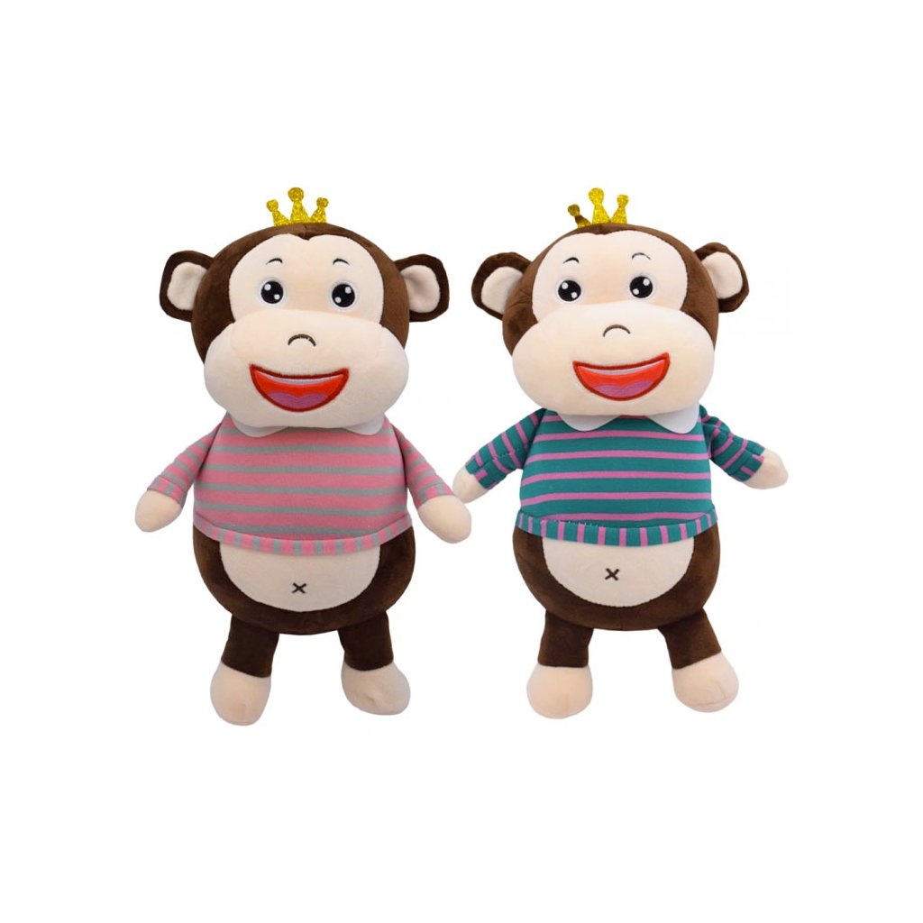 Plyšová opička s korunkou. Možnosť výberu z dvoch farieb - v zelenom alebo ružovom tričku. Rozmer 35 cm