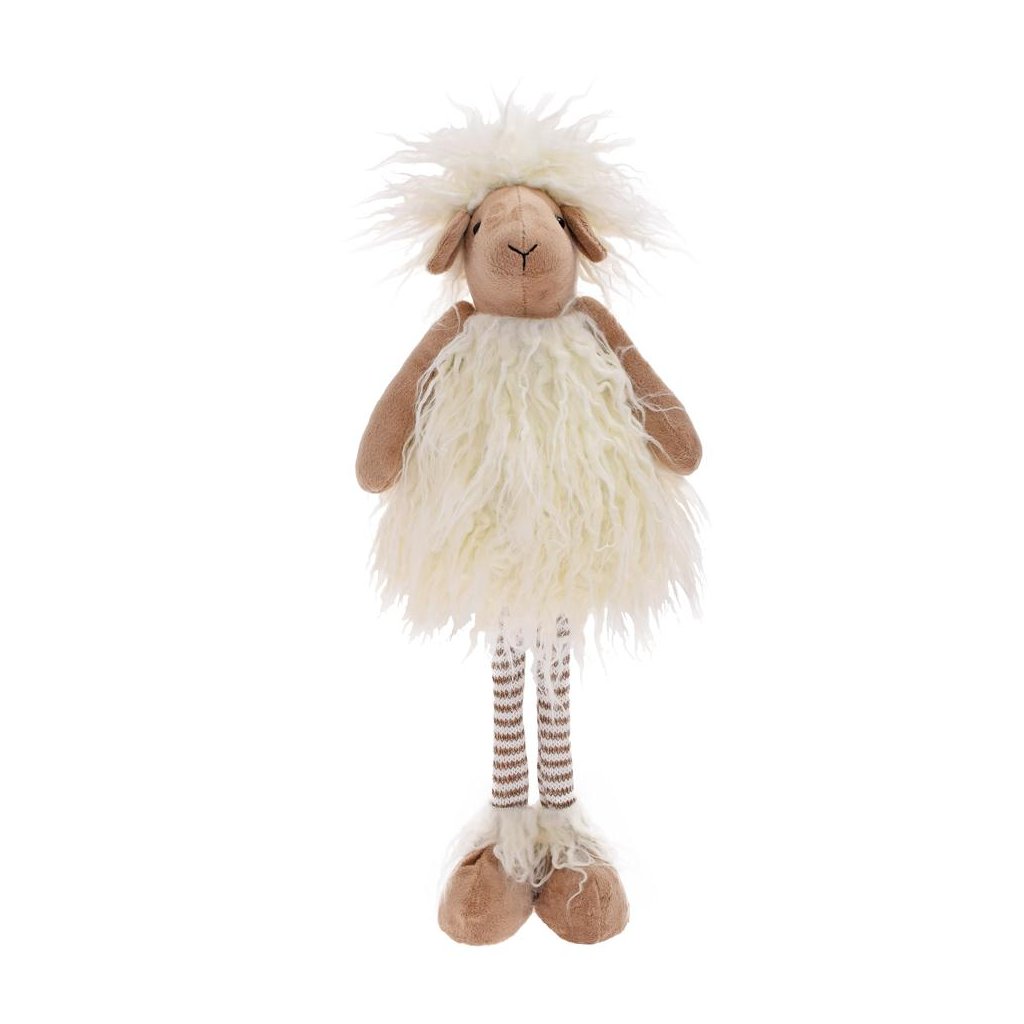 OVEČKA STOJACA BIELO-HNEDÁ TEXTIL 18*12*44CM