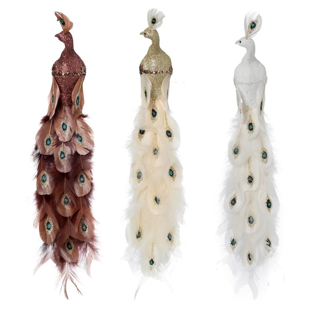 Cena za 1 ks: 9.09, PÁV NA ŠTIPCI HNE/BIE/ZLA-KR GLITER PERIE MIX 36*9*8CMDodatočné parametre