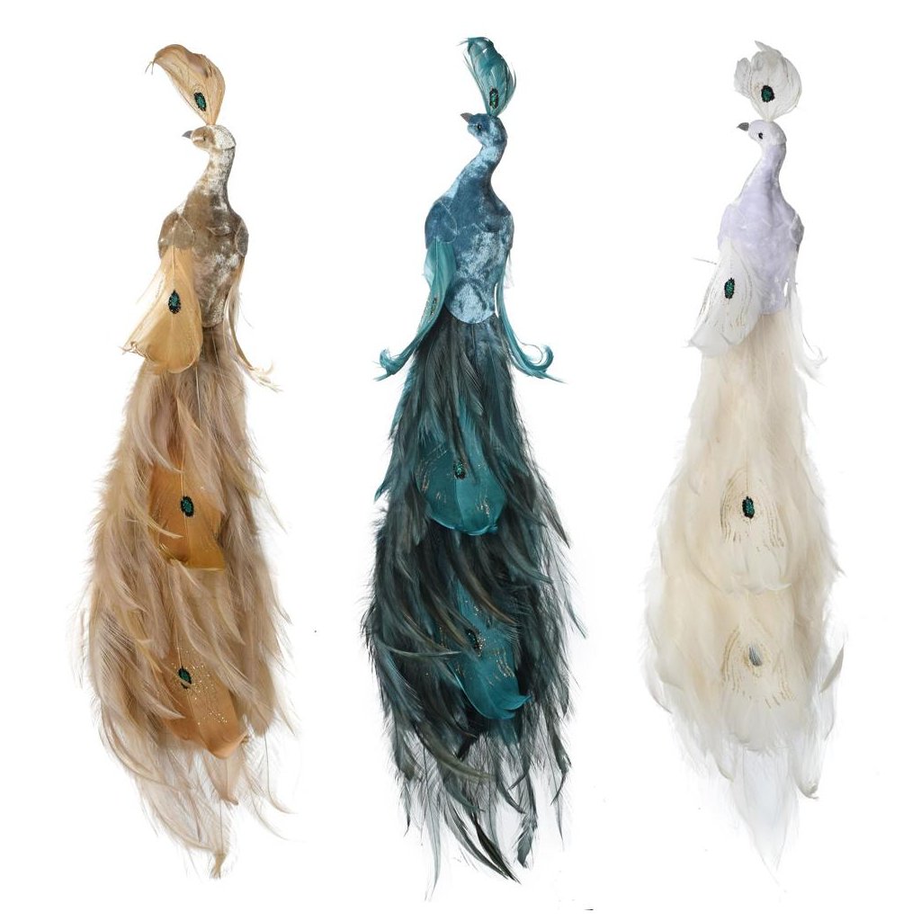 Cena za 1 ks: 20.55, PÁV ŠTIPEC BIE/BÉŽ/MOD GLITER/ZAMAT PERIE MIX 42*11*6,5CMDodatočné parametre