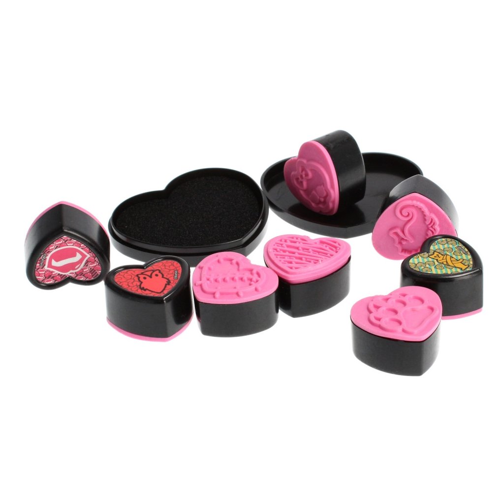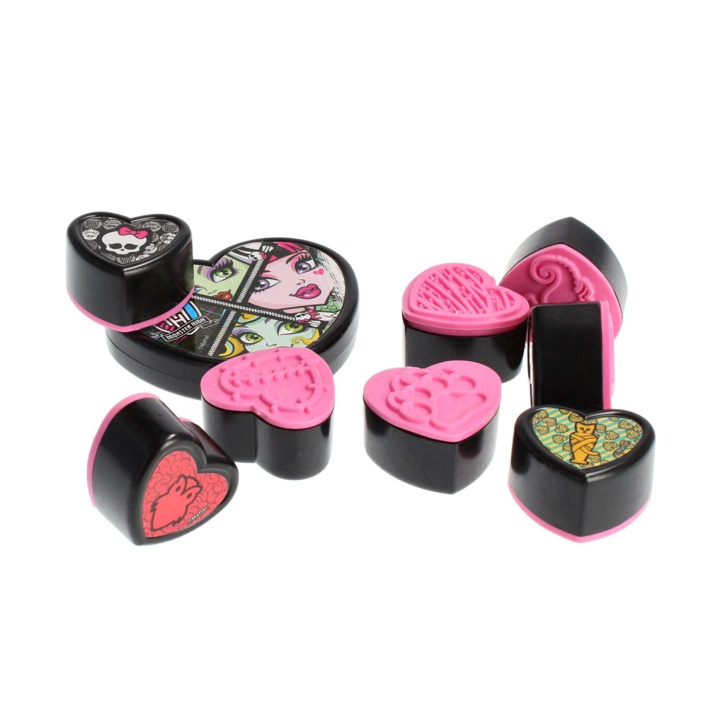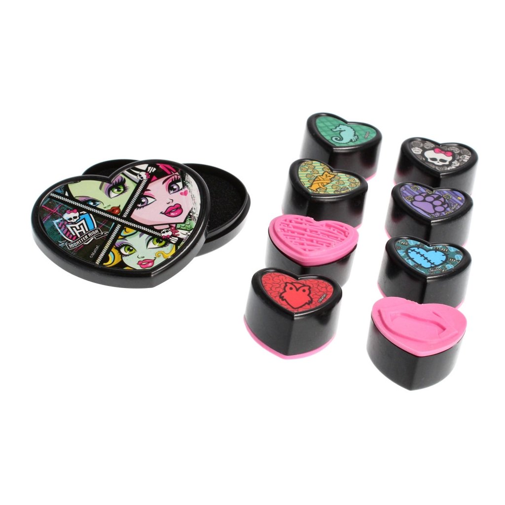 Pečiatky Monster High. Sada obsahuje 8 pečiatok a atramentový vankúšik. Hračka je určená pre deti vo veku 3+. Rozmery balenia sú 16x21x2.Dodatočné parametre