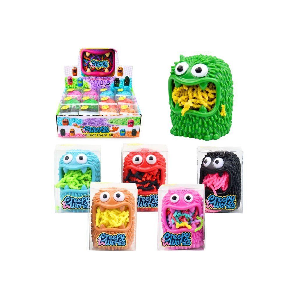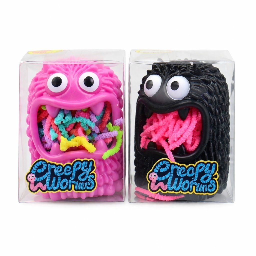 Zábavná hračka s príšerou a červíkmi poteší deti pri stláčaní, mačkaní a veselom hraní. Originálne prevedenie s červíkmi ukrytými v príšere prináša veľa smiechu a podporuje fantáziu aj jemnú motoriku rúk. Praktická veľkosť je ideálna do detských rúk aj na prenášanie. Skvelá drobnosť pre malých milovníkov netradičných hračiek.Dodatočné parametre