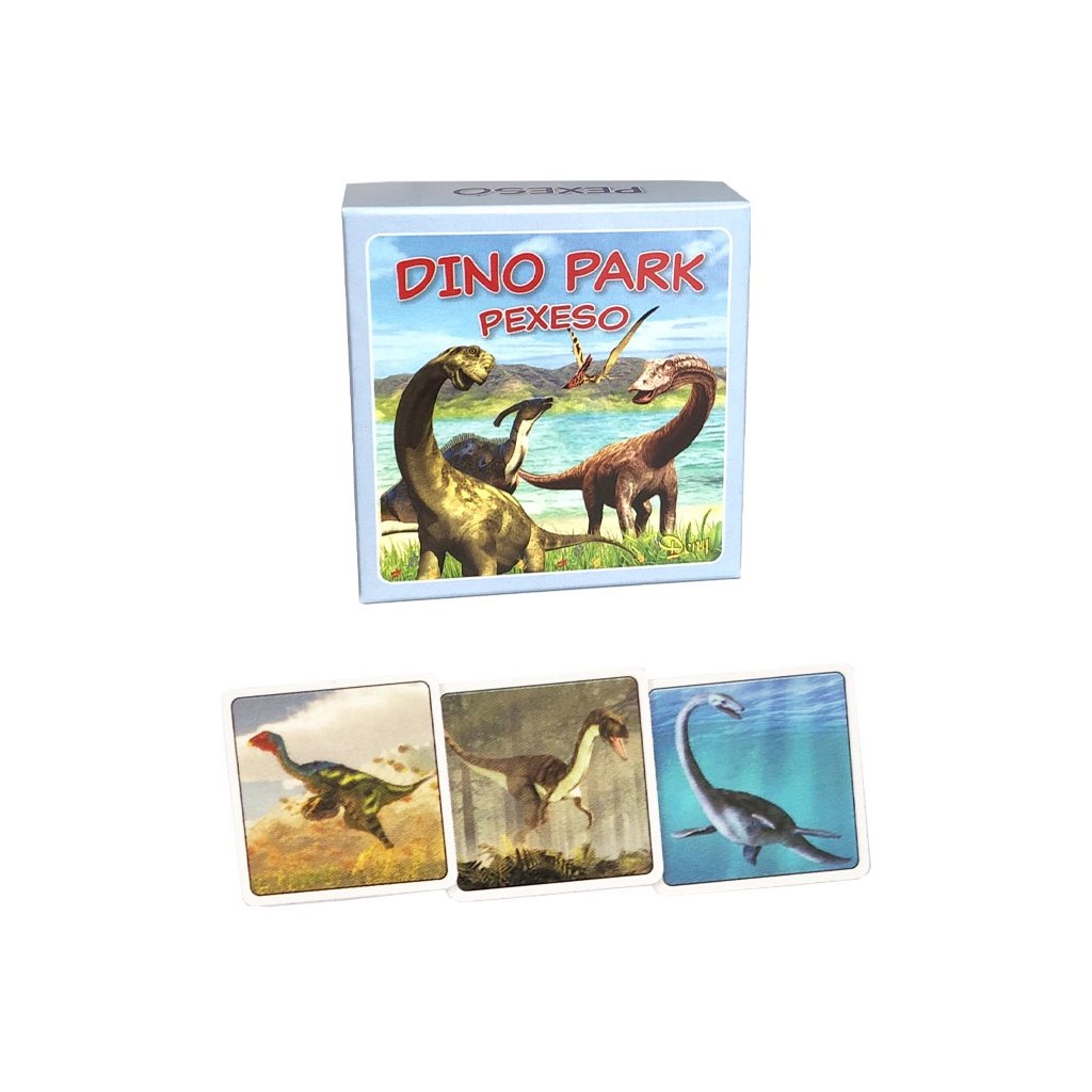 Pexeso Dino Park. Pexeso je prakticky nastrihané v cestovnej krabičke. Karty pexesa sú nádherne ilustrované a majú rozmer karty až 6,5cm. Balenie obsahuje 64kariet.Dodatočné parametre