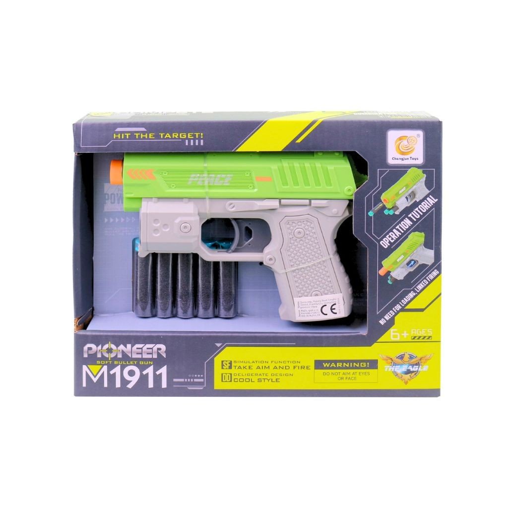 Plastová pištoľ so zásobníkom mäkkých nábojov je skvelou hračkou pre malých akčných hrdinov. Jednoduché manuálne nabíjanie umožňuje rýchlu streľbu a bezpečné mäkké náboje poskytujú veľa zábavy doma aj vonku. Pištoľ má pevné spracovanie a moderný dizajn, vďaka čomu je ideálna na dynamické hry a tréning presnosti. Výborná voľba pre všetkých chlapcov, ktorí milujú akčné dobrodružstvá.Dodatočné parametre