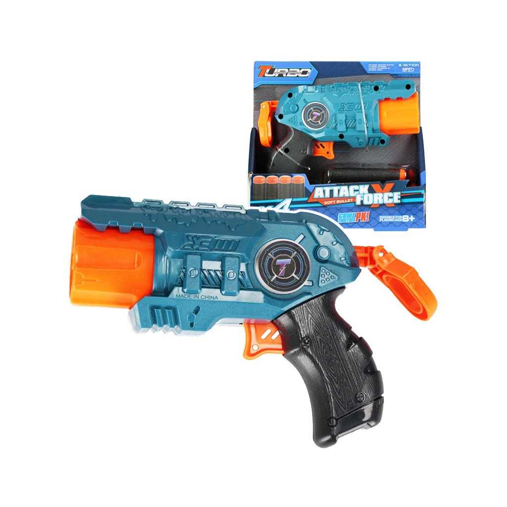 Pištol s penovými nábojmi, má rozmery 16X16X6 cm. Obsah sady je pištoľ, 4x penové šípky. Cena je za 1 sadu. Vhodné pre deti 3+.Dodatočné parametre
