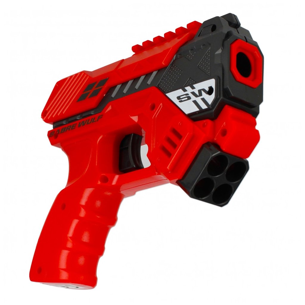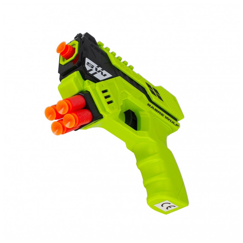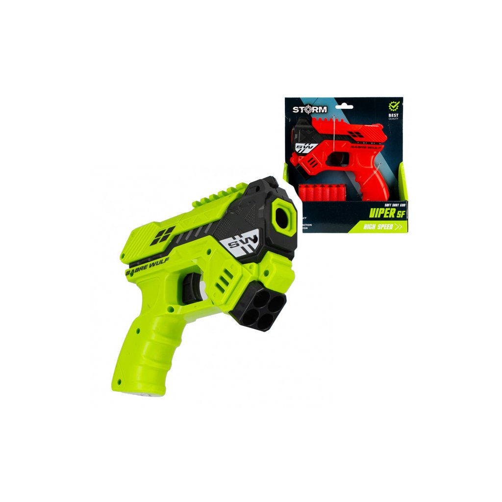 Pištoľ, má mäkké a nezávadné penové náboje. Je dostupná v dvoch farebných prevedeniach červená a zelená. Obsah sady je pištoľ, 6 penových šípok. Rozmery produktu sú 17x15x4cm. Hračka je určená pre deti vo veku 3+.Dodatočné parametre