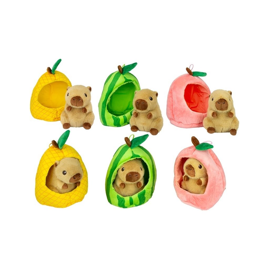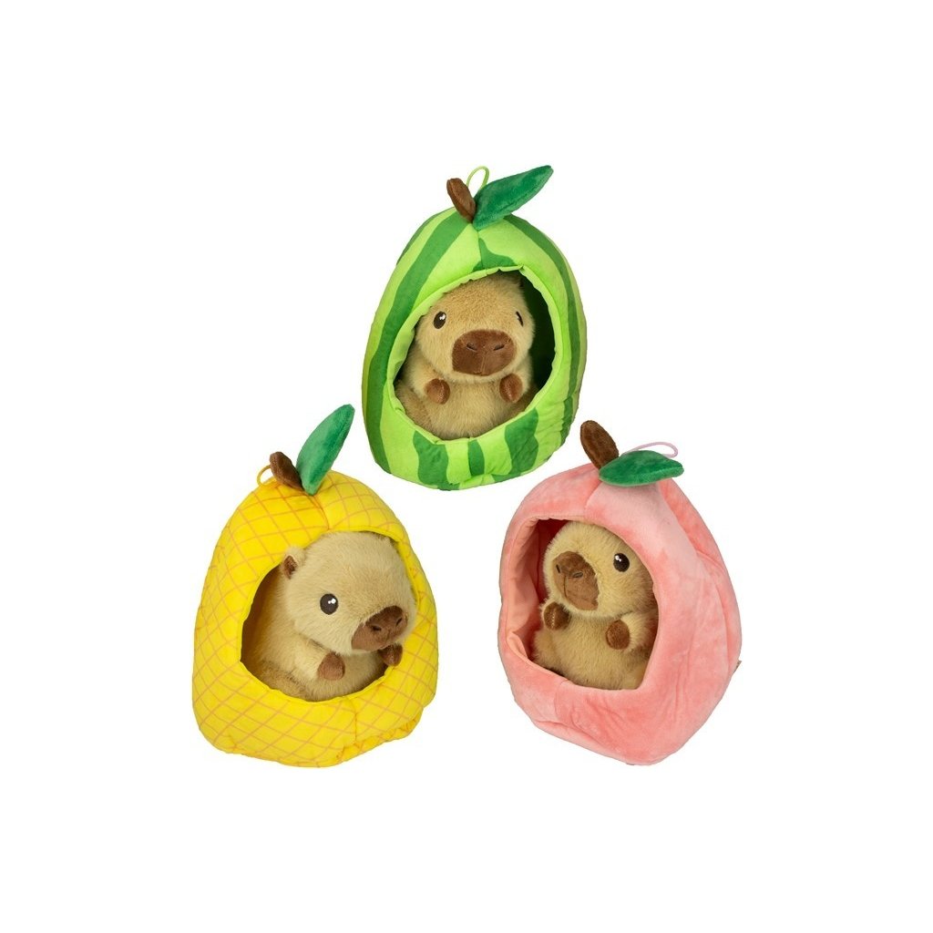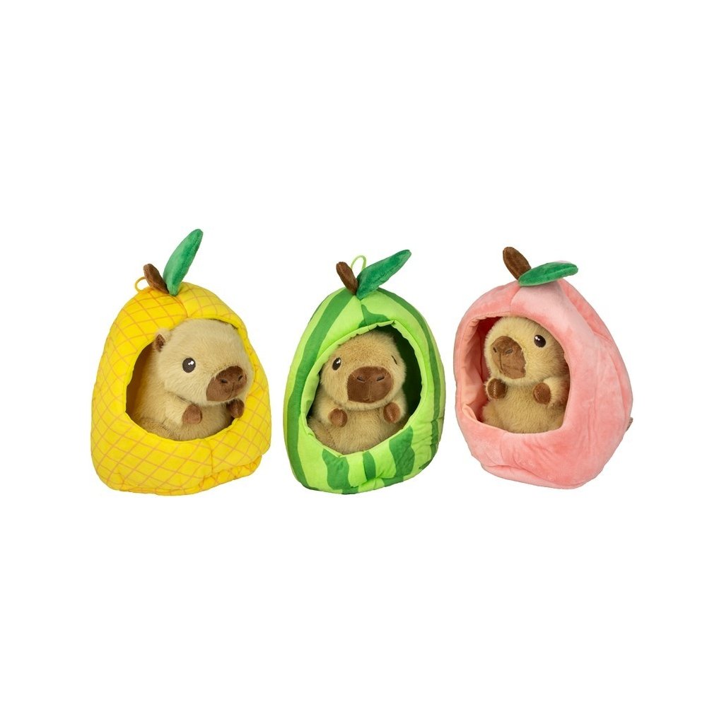 Roztomilá plyšová kapybara veľkosti 15cm ukrytá v ovocí je originálny a hravý plyšák, ktorý si deti okamžite zamilujú. Mäkký materiál je ideálny na maznanie a kompaktná veľkosť na hranie aj cestovanie. Dostupné v troch druhoch.Dodatočné parametre