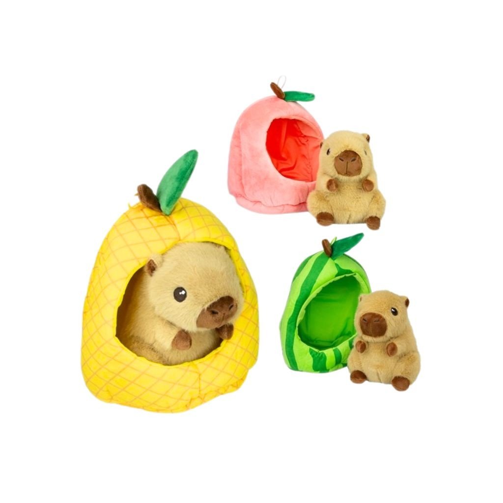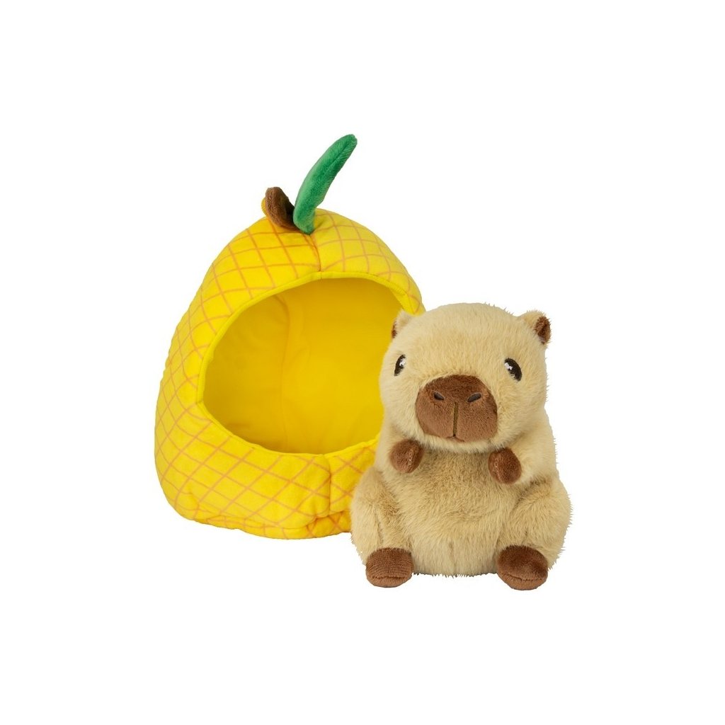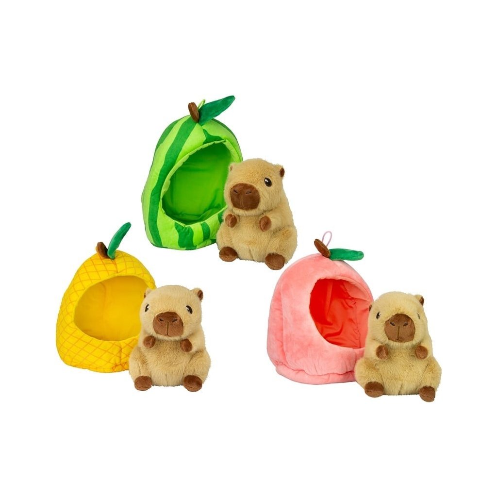 Roztomilá plyšová kapybara veľkosti 15cm ukrytá v ovocí je originálny a hravý plyšák, ktorý si deti okamžite zamilujú. Mäkký materiál je ideálny na maznanie a kompaktná veľkosť na hranie aj cestovanie. Dostupné v troch druhoch.Dodatočné parametre