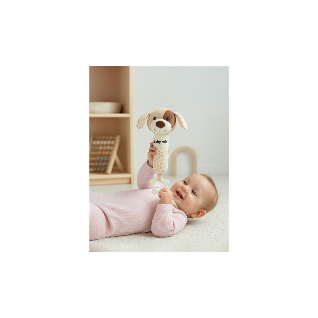 Plyšové hrkálka s pískatkom Baby Mix – hnedý psík