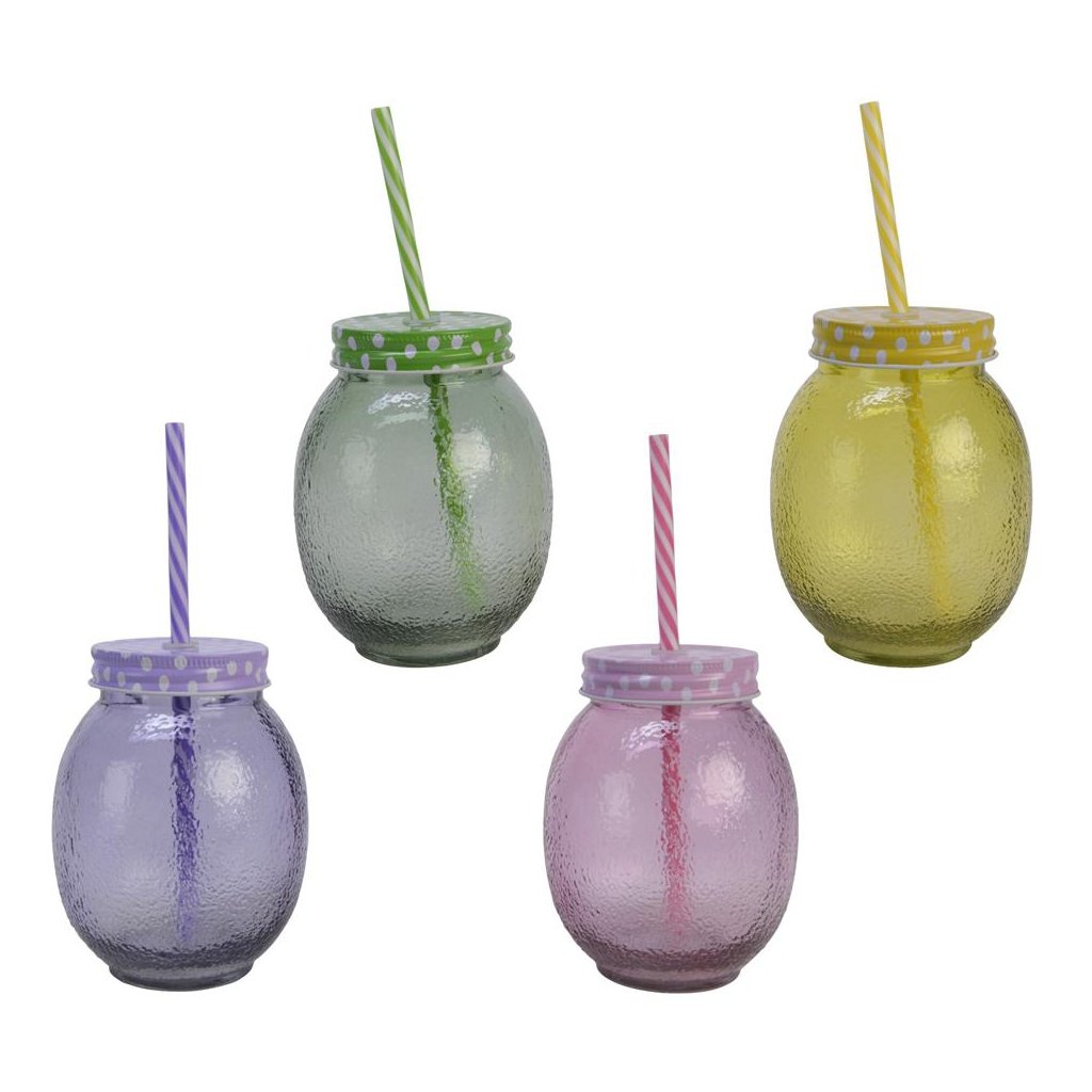Cena za 1 ks: 3.8, Pohár na vodu sklo so slamkou z PP 4ass V13.5/pr.10,2cmDodatočné parametre