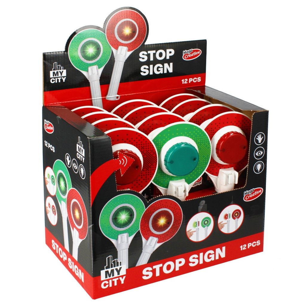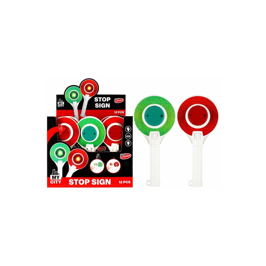 Policajná stopka, na jednej strane svieti na zeleno a na druhej na červeno. Rozmery produktu sú 11x24x4cm. Napájanie potrebné na 2 batérie AA 1,5V - súčasťou balenia. Balené po 12 kusoch. Cena je za 1 kus. Výrobok je určený pre deti vo veku: 3+.Dodatočné parametre