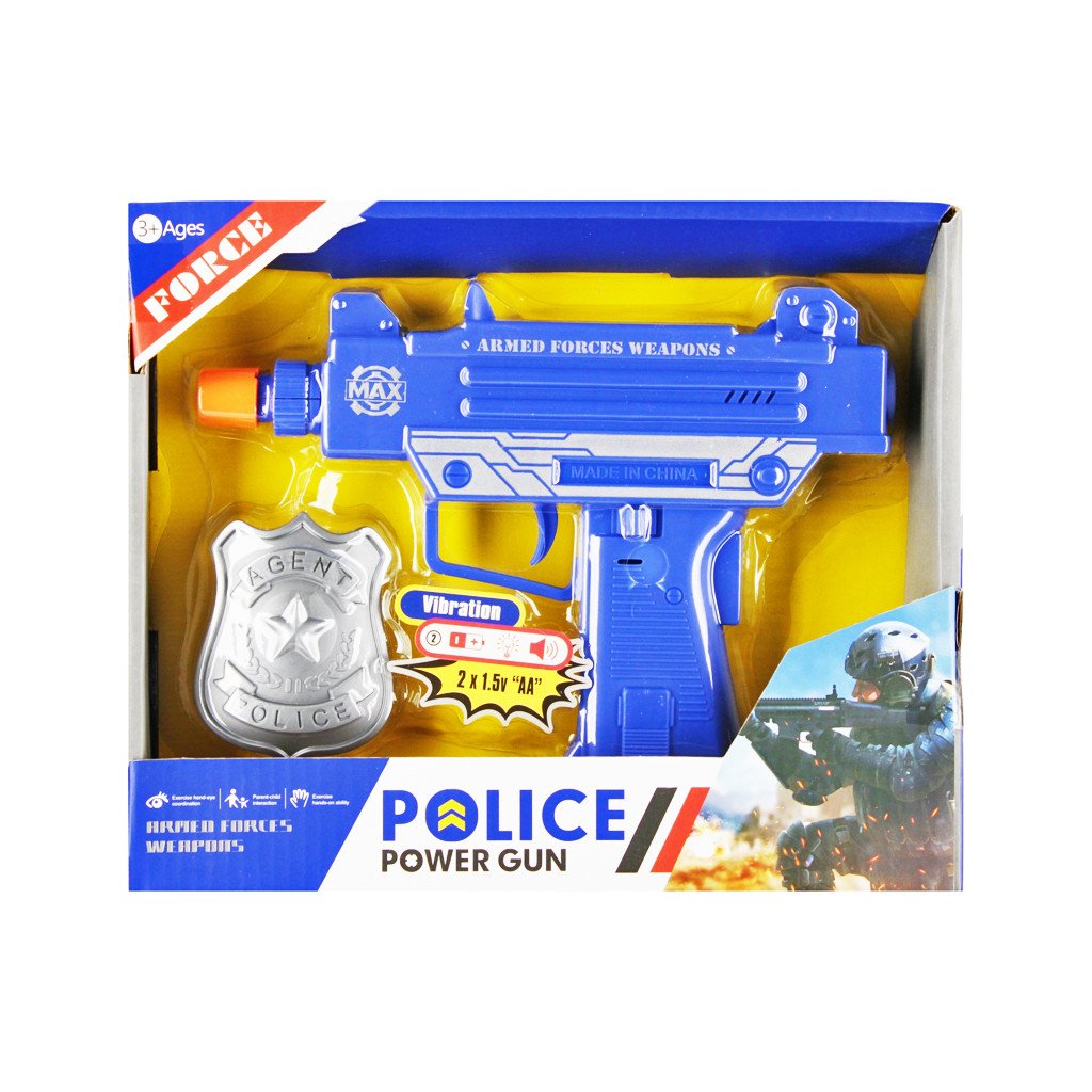 Policajný set so zbraňou, obsahuje zbraň a odznak. Potrebné sú 2 batérie AALR6 nie sú súčasťou balenia. Rozmery produktu sú 20x15x3cm. Vhodné pre deti 3+.Dodatočné parametre