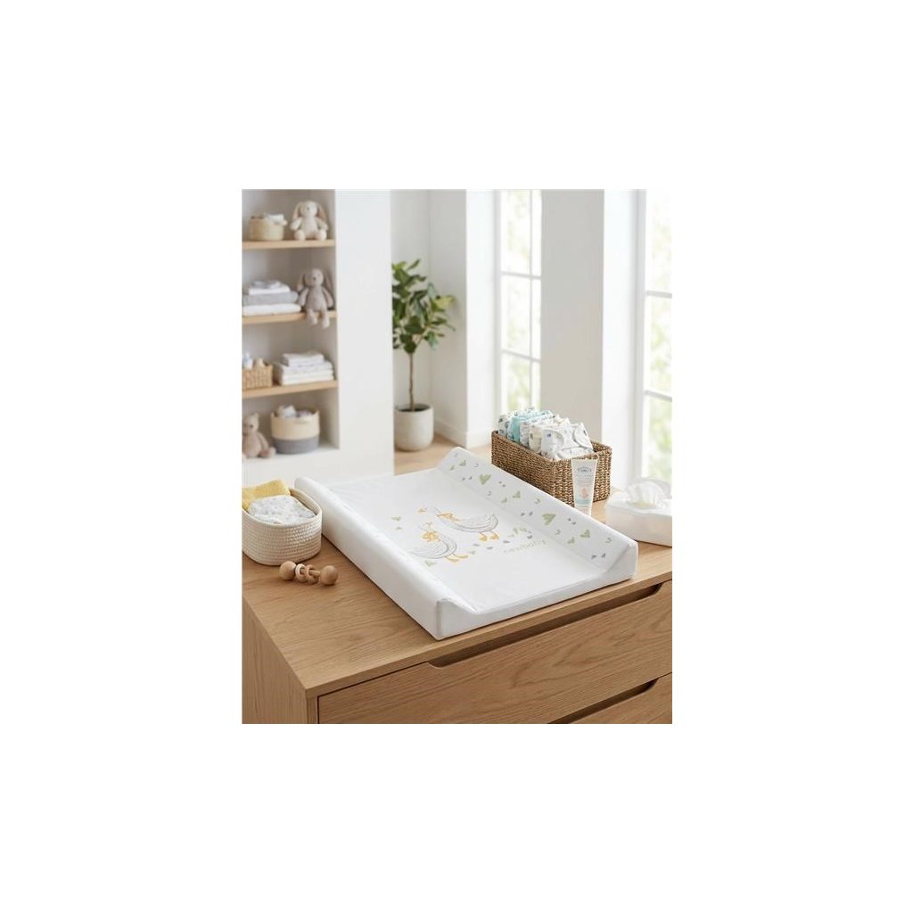 Praktický tvarovaný prebaľovací nástavec New Baby Husičky z nepremokavého, plastového materiálu v príjemných pastelových farbách. Roztomilý a aktuálny detský vzor s husičkami určite zaujme pozornosť vášho bábätka.