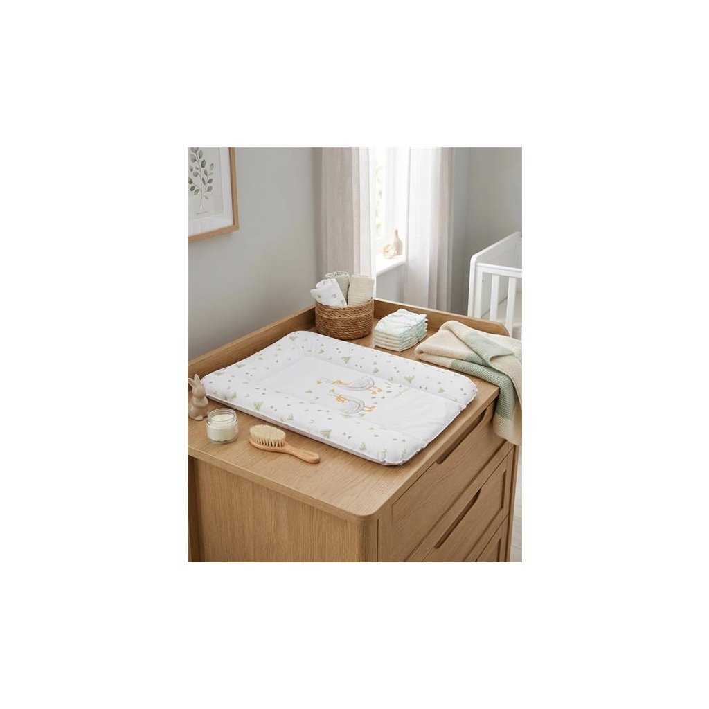 Praktická mäkká prebaľovacia podložka New Baby Husičky z nepremokavého, plastového materiálu v príjemných pastelových farbách. Roztomilý a aktuálny detský vzor s husičkami určite zaujme pozornosť vášho bábätka.