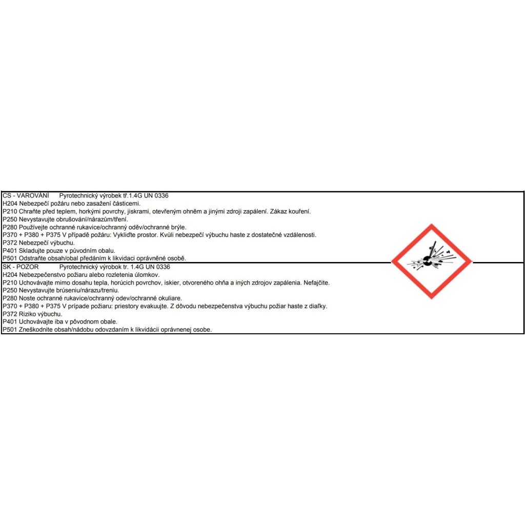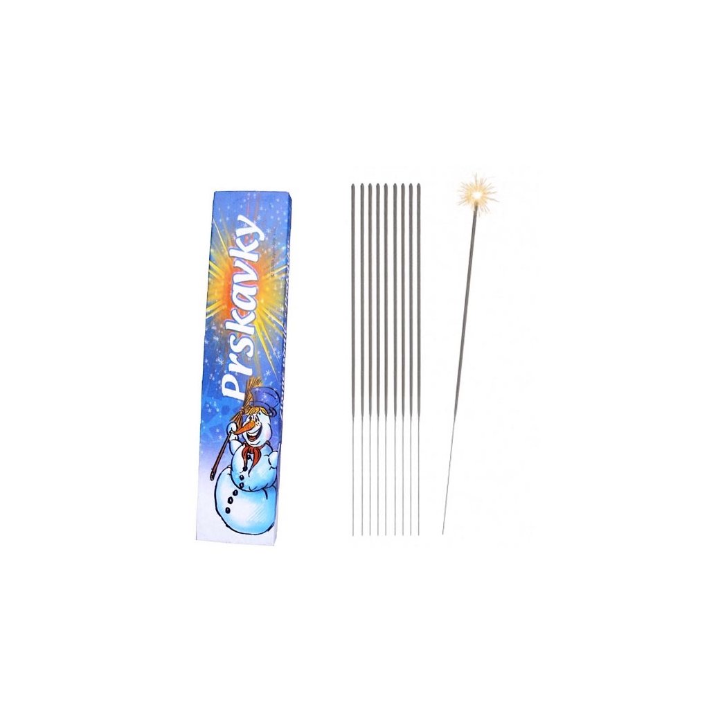 Prskavky, patria do kategórie zábavná pyrotechnika. Po zapálení začnú horieť a prskať. Cena je za celé vrecko, ktoré obsahuje 10ks prskaviek. Bezpečnostné informácie a pokyny pre umiestnenie: Len na vonkajšie použitie. Používať jednotlivo nad nehorľavým povrchom. Zapaľovať vždy len jednu prskavku na jej najvzdialenejšom konci. Držať prskavku stranou akejkoľvek časti tela a horľavých materiálov. Nevdychovať dym. Použité prskavky sú veľmi horúce, odložiť napr. do nádoby s vodou. V prípade, že výrobok zlyhal, počkajte 15 min. a potom ho ponorte na min. 2 hodiny do vody. Následne ho zlikvidujte ako komunálny odpad.Dodatočné parametre